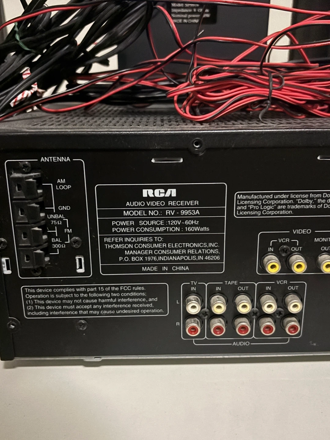 • RCA RV-9953A Receiver: Features a built-in 3-Disc CD Changer, AM/FM tuner, and multiple RCA inputs for connecting a TV, phone (with adapter), or other devices.