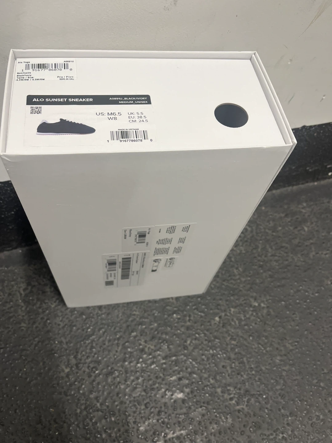 Selling a pair of ALO empty Sunset Sneakers, brand new in the box! These are a size 6.5 US Women's and the colour is Black/Ivory. Comes with the original box and packaging