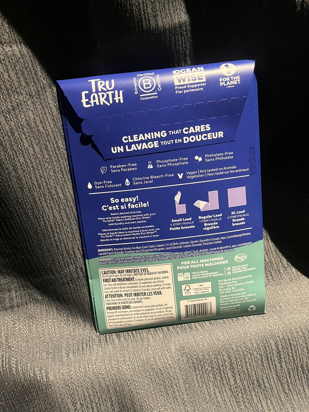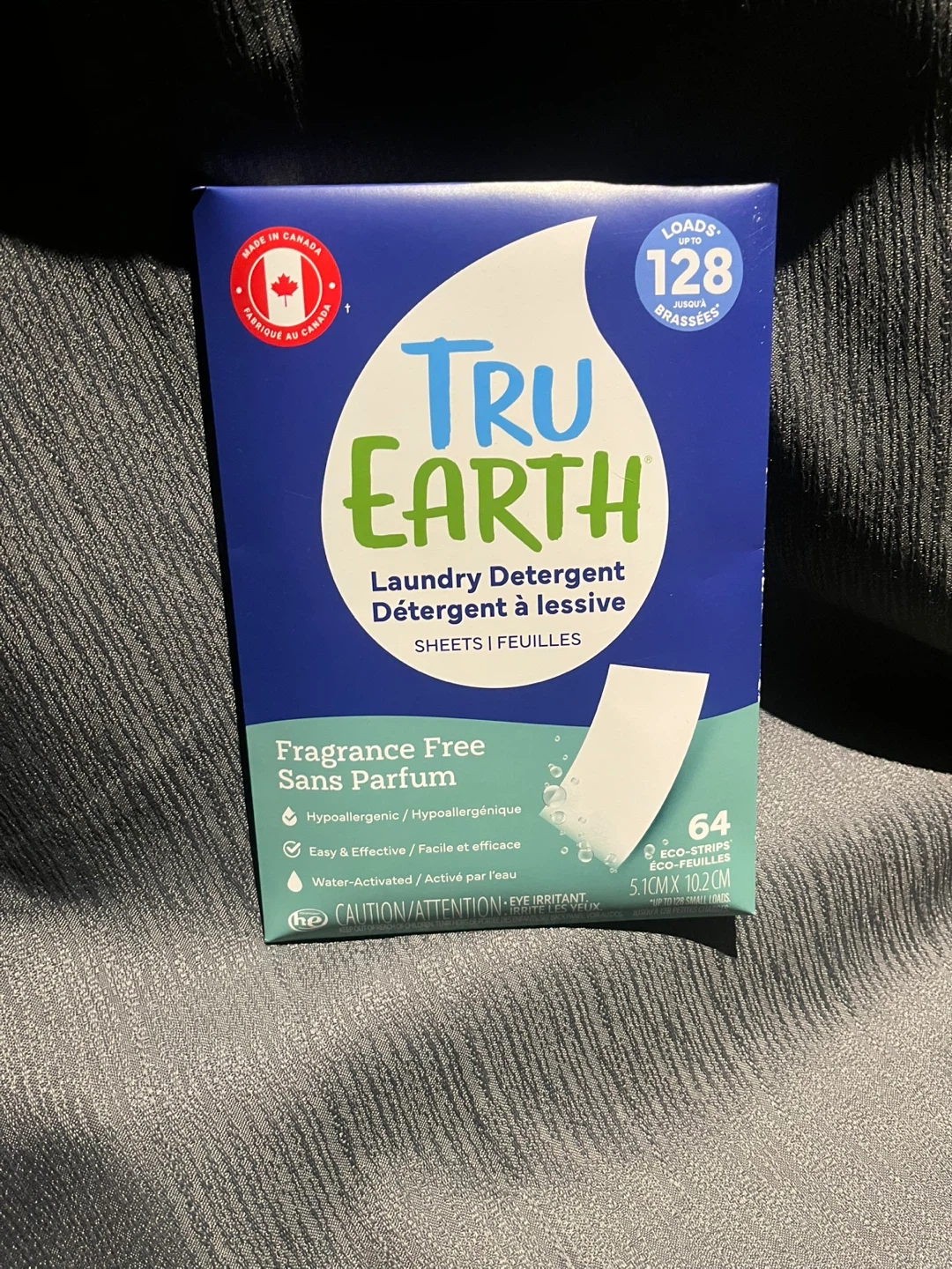 Selling a box of Tru Earth Laundry Detergent sheets, good for up to 128 loads! These are fragrance-free, hypoallergenic, and easy to use. Just toss a strip in with your laundry. They're also eco-friendly and water-activated. Made in Canada