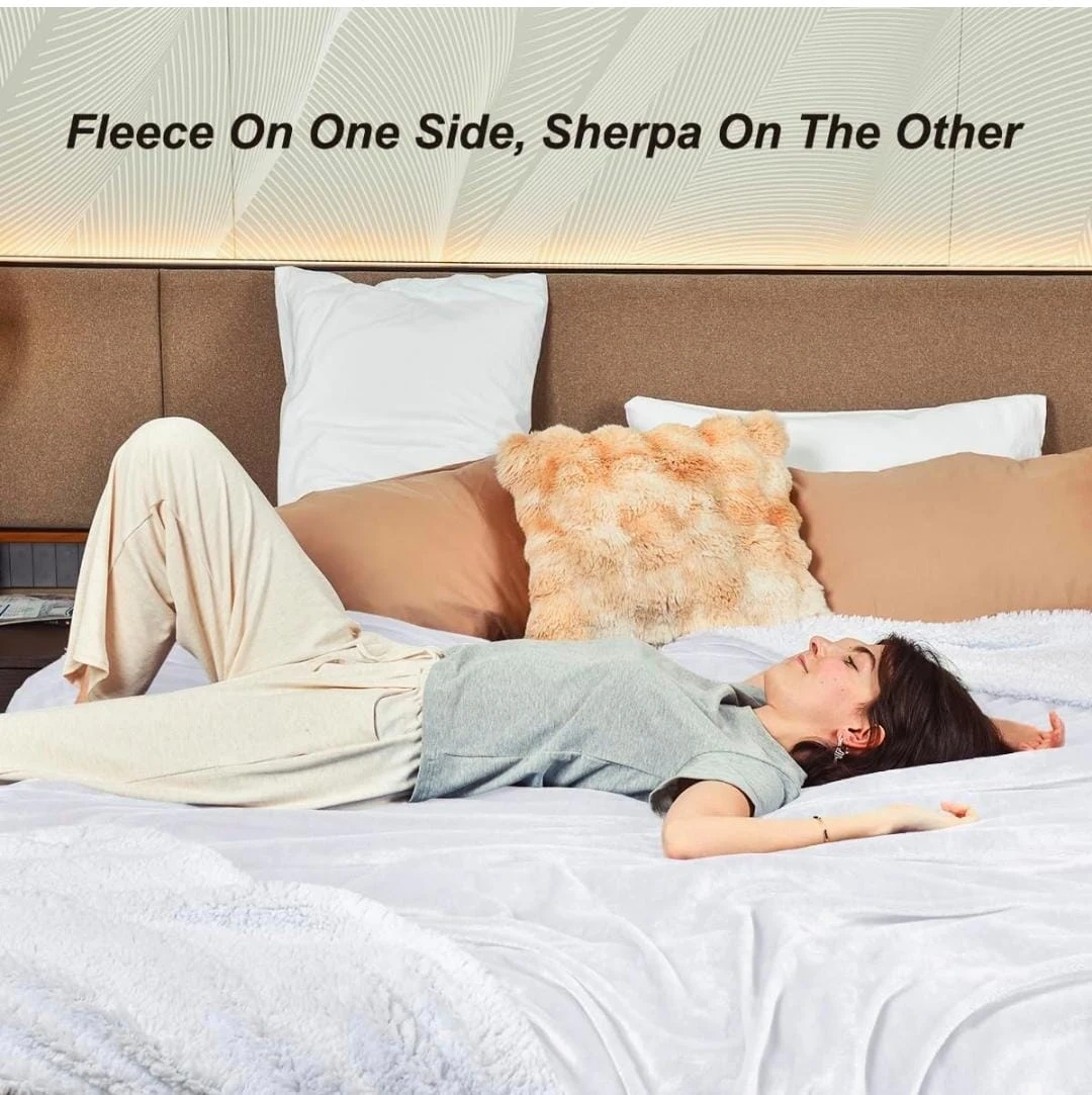 Kawahome 500GSM Sherpa Fleece Blanket – Queen Size 90”×90”