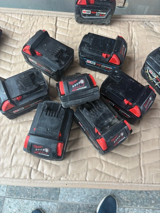 I'm selling a selection of used Milwaukee M18 batteries, perfect for keeping your tools powered up. These batteries are compatible with the Milwaukee M18 cordless tool system. I have various amp-hour ratings available. While these batteries have seen some use, they still hold a good charge and are ready to get back to work. Each battery has been tested to ensure it functions properly. Please note that since these are used, they may show signs of wear such as scuffs or scratches, but this does not affect their performance. I am asking $60 per battery. Prices are firm. If the ad is up, the batteries are still available.