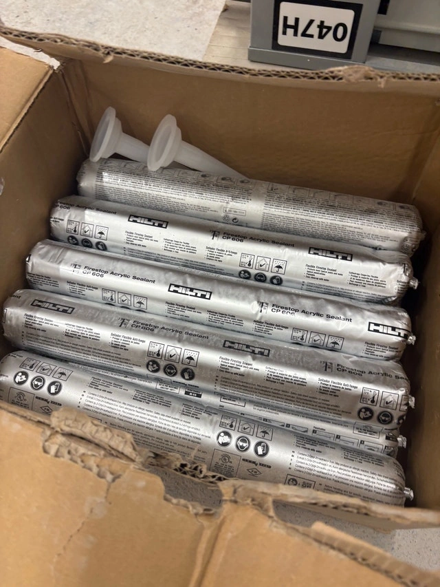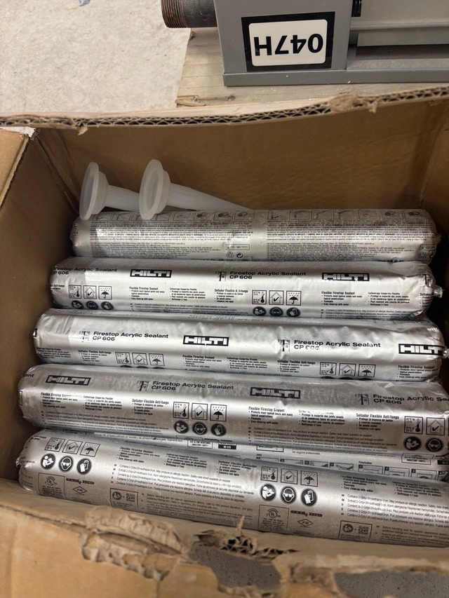I have several tubes of Hilti CP 606 Firestop Acrylic Sealant. These are new and unopened, perfect for ensuring fire safety in construction and renovation projects. This sealant is designed to prevent the spread of fire and smoke through joints and penetrations in walls and floors.