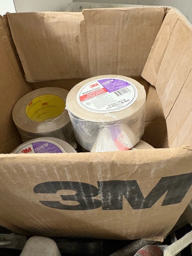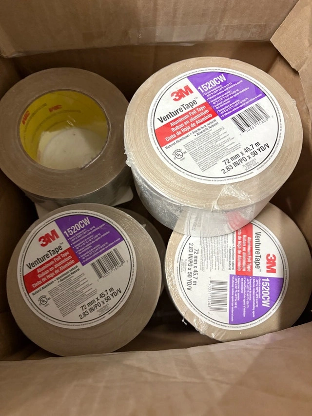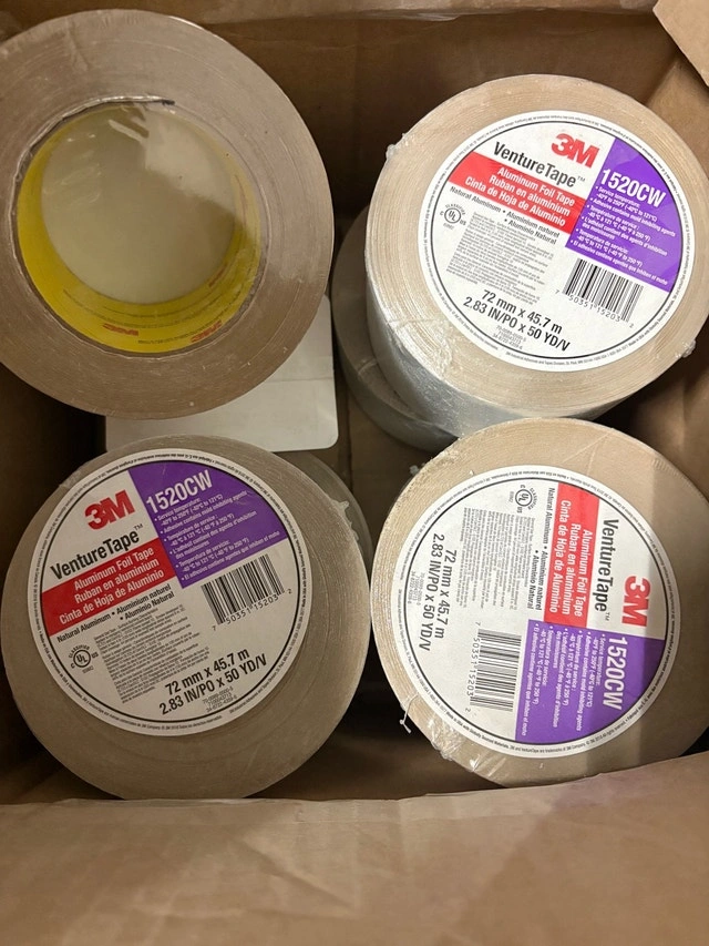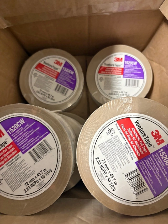 This is a new box of 3M Venture Tape 1520CW aluminum foil tape, measuring 72 mm x 45.7 m (2.83 in x 50 yd). This tape is ideal for various sealing and insulation applications. I have 8 brand new rolls. Specifications: