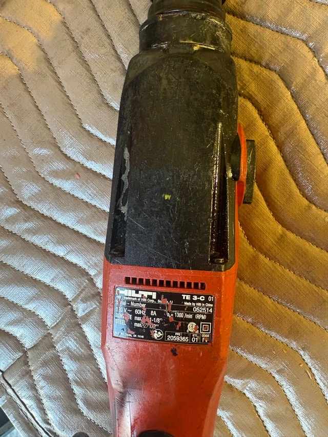 I'm selling a Hilti TE 3-C drill, known for its robust performance and reliability in tough job site conditions. This rotary hammer drill is a workhorse, perfect for drilling into concrete, masonry, and stone with ease. Although it's a used item, it remains in good working condition. Specifications: * Model: Hilti TE 3-C * Type: Rotary Hammer Drill * Application: Ideal for drilling into concrete, masonry, and stone. This Hilti TE 3-C drill is ready to tackle your toughest projects. If you're seeing this ad, the drill is still up for grabs, so don't miss the chance to add this powerhouse to your toolkit!