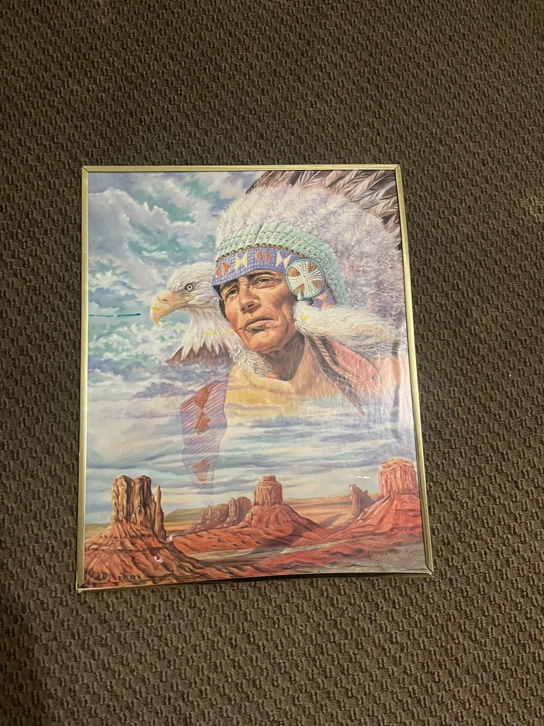 Vintage Framed Art Native American (Signed)20x24