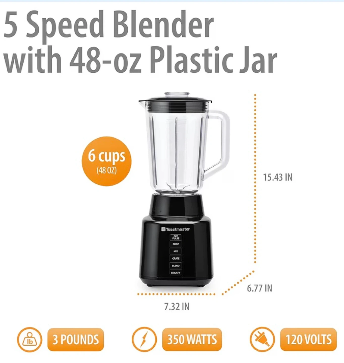 Toastmaster 5-Speed Blender with 48-oz Jar