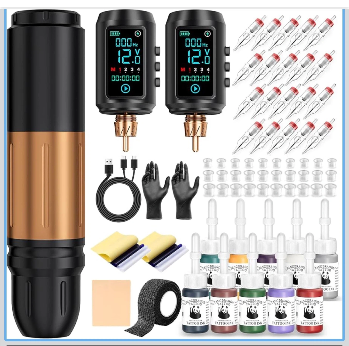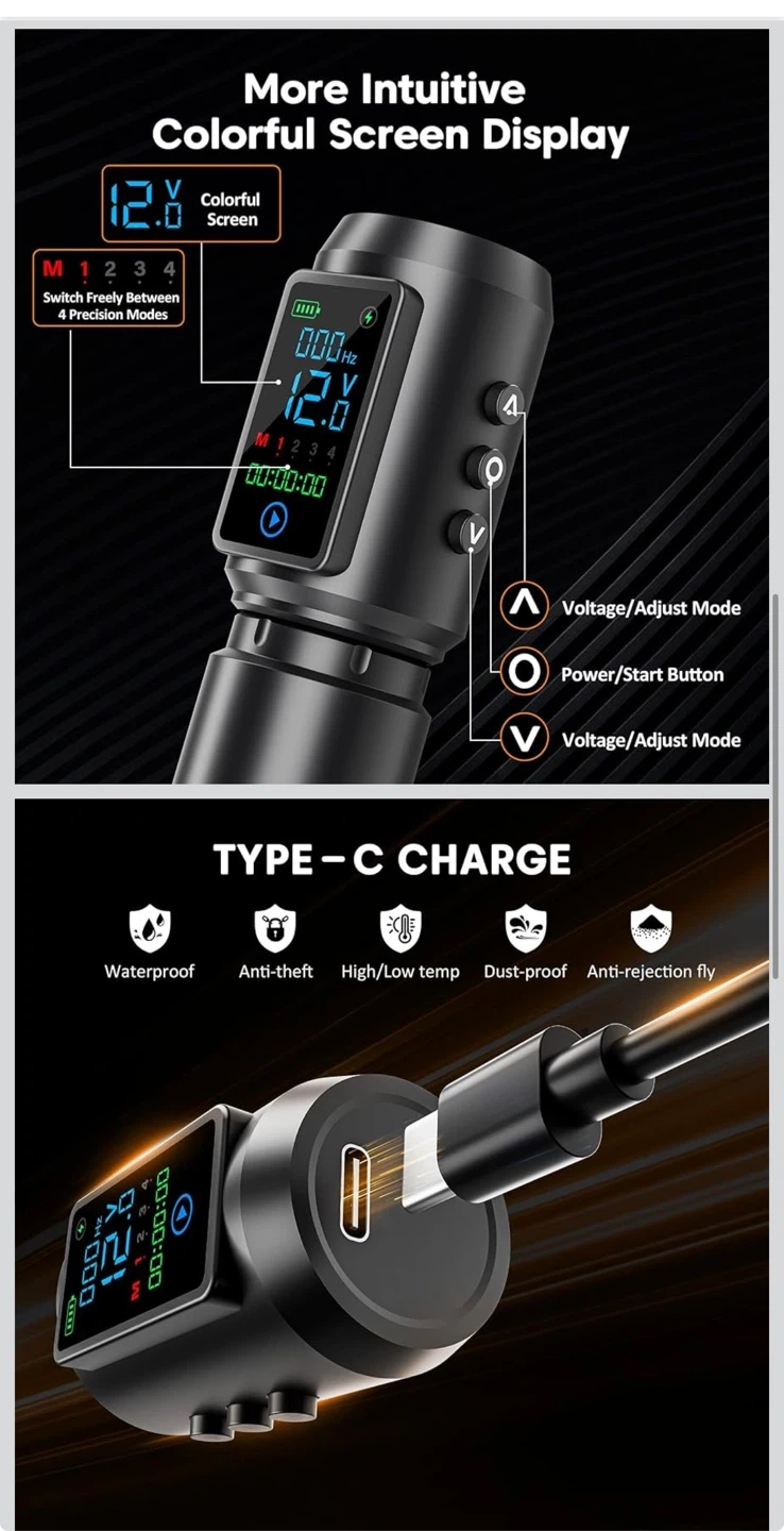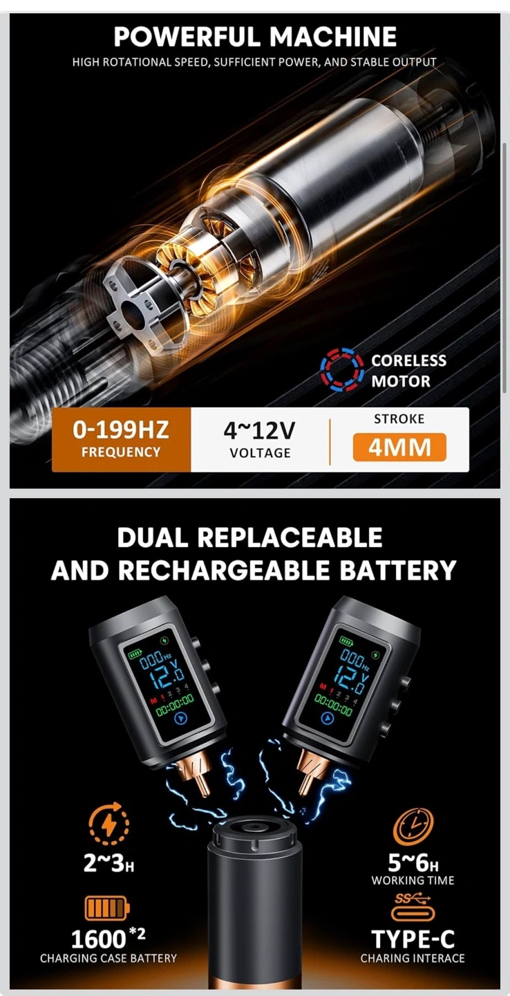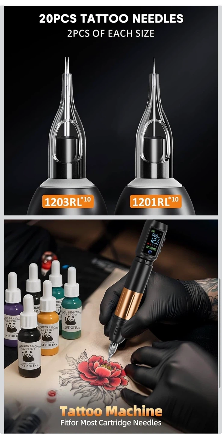 Tattoo Gun Kit Wireless Tattoo Machine Pen Kit with 2Pcs 1600mAh Replaceable battery and 20 pcs Tattoo Cartridge Needles, 10 Ink Colors for Complete Tattoo Machine kit Supplies for Beginners