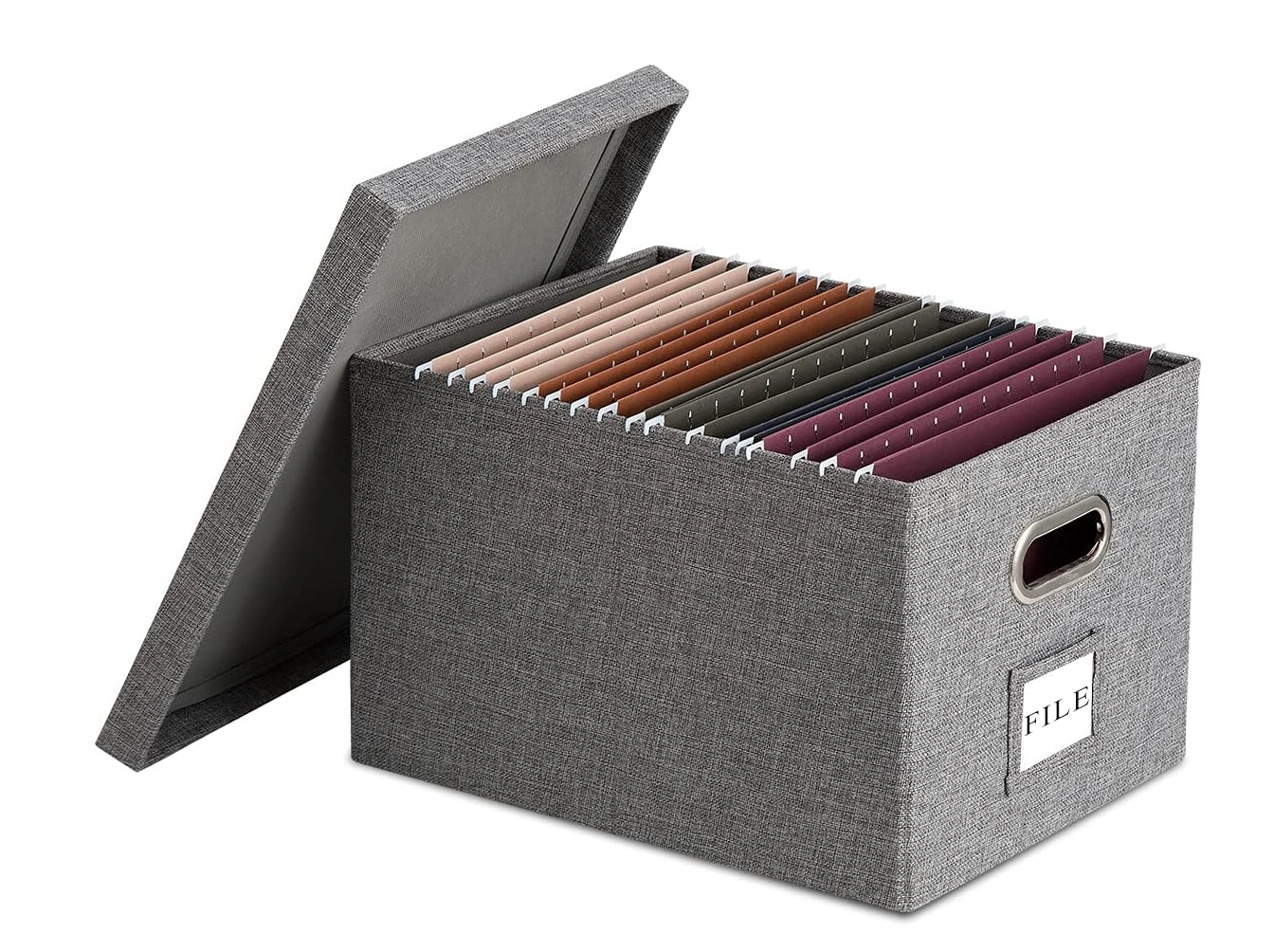 Linen File Boxes Organizer with Lids Letter/Legal Size Multi-Purpose Collapsible Hanging File Storage Organizer File Storage Bin