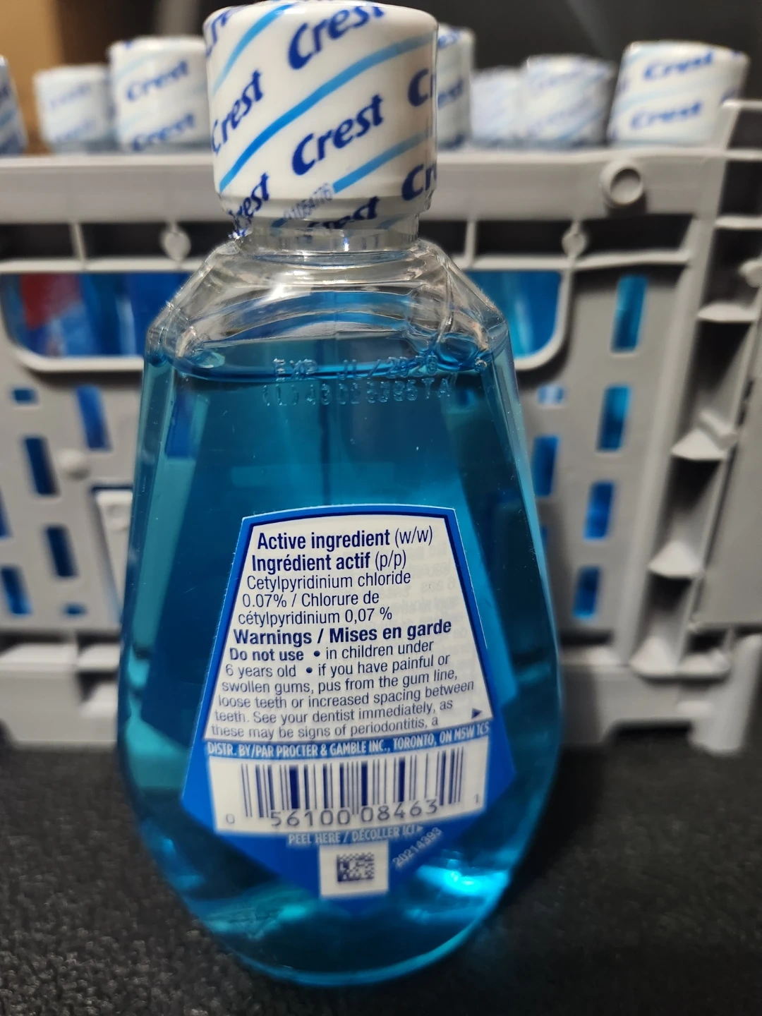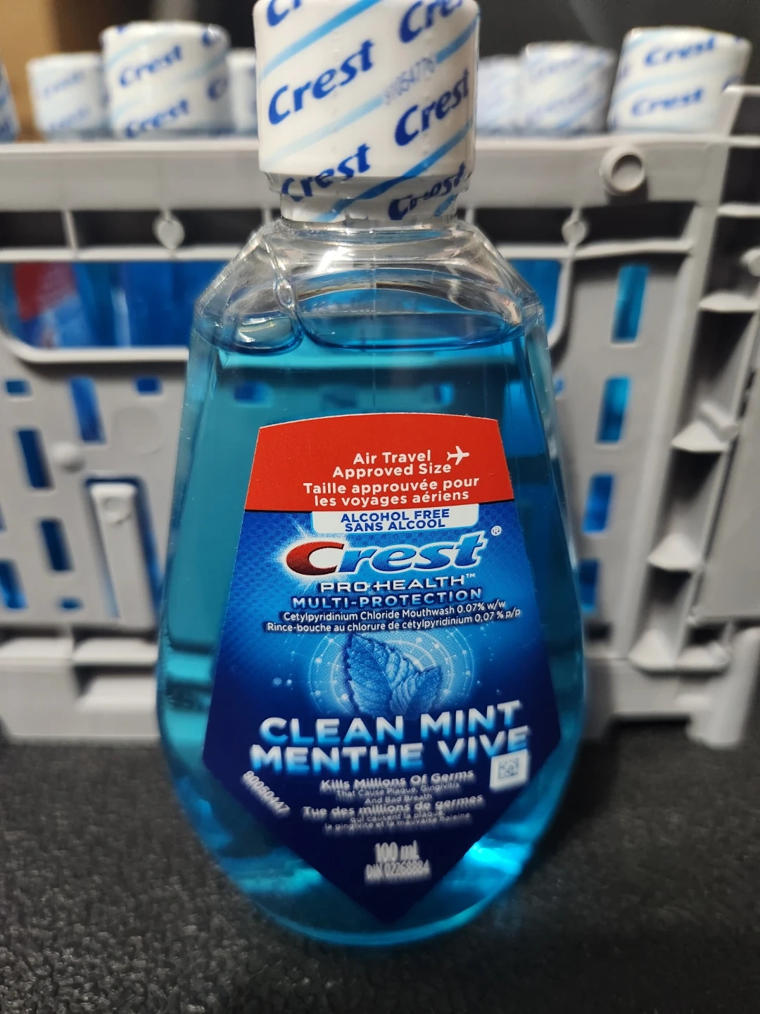 Selling a bottle of Crest Pro-Health Multi-Protection mouthwash in Clean Mint flavour. It's the perfect air travel size (100 mL) and alcohol-free. Keep your breath fresh on the go