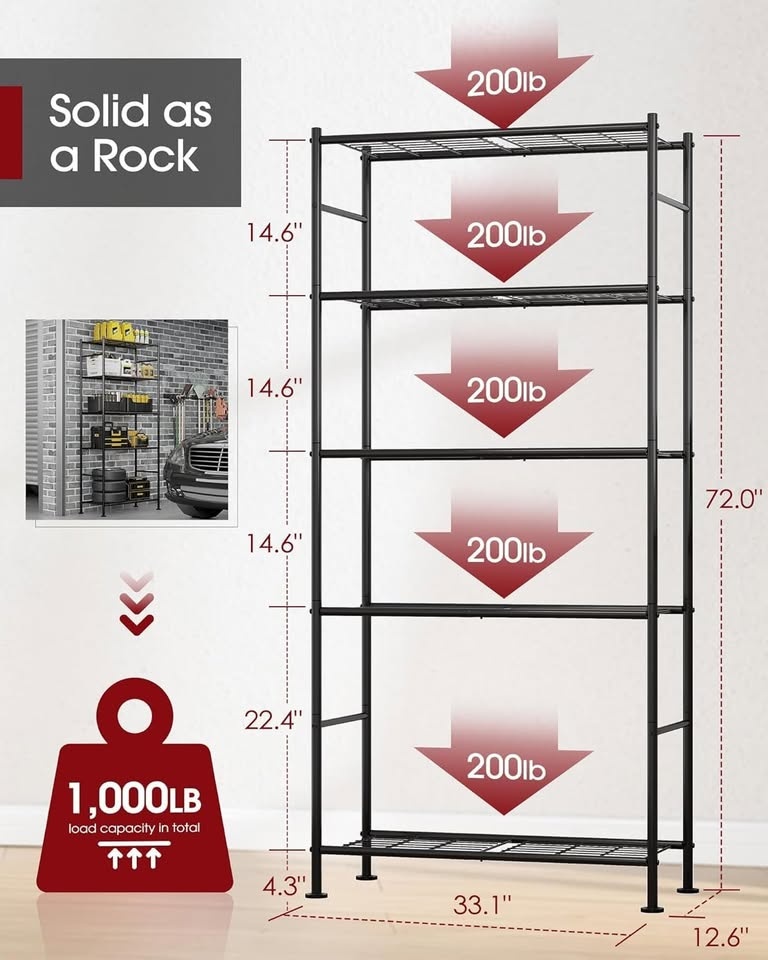 5 Tier Shelf - Heavy Duty Metal Storage Shelf