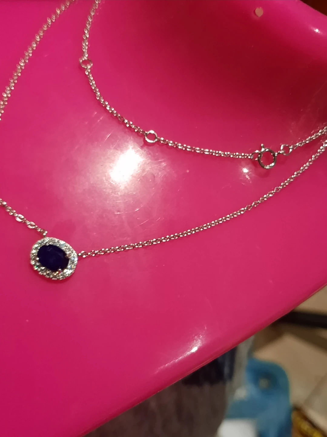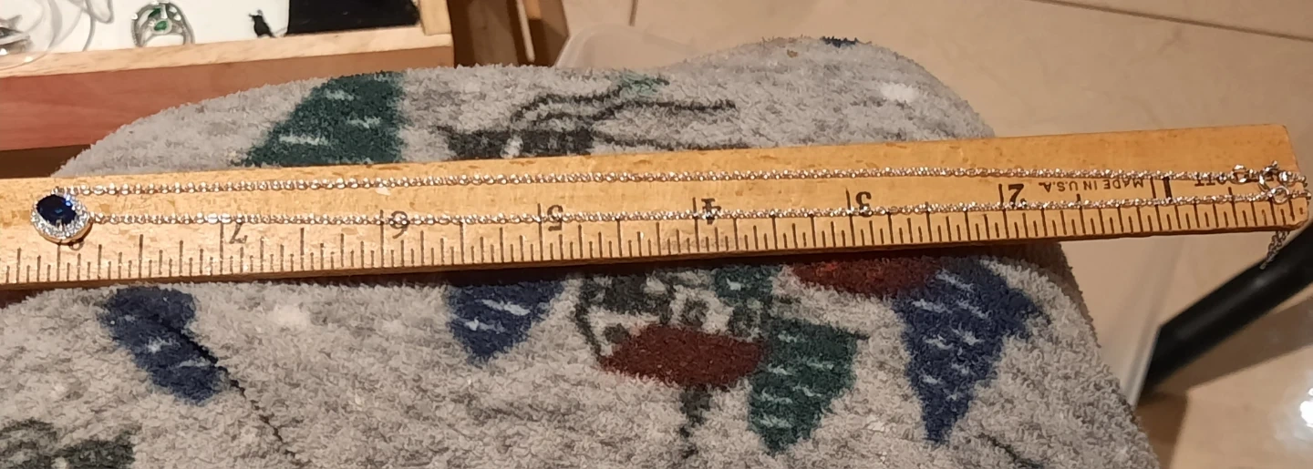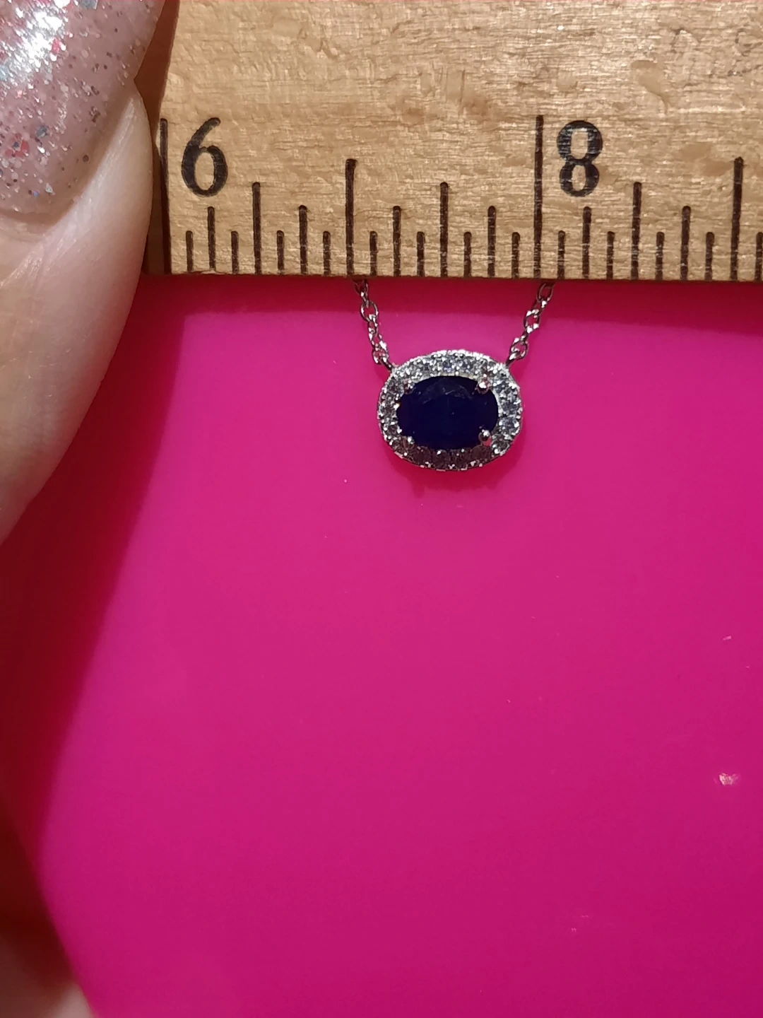 Authentic genuine solid sterling silver September birthstone Sapphire & clear CZ 16" CHAIN w/ 2" extender