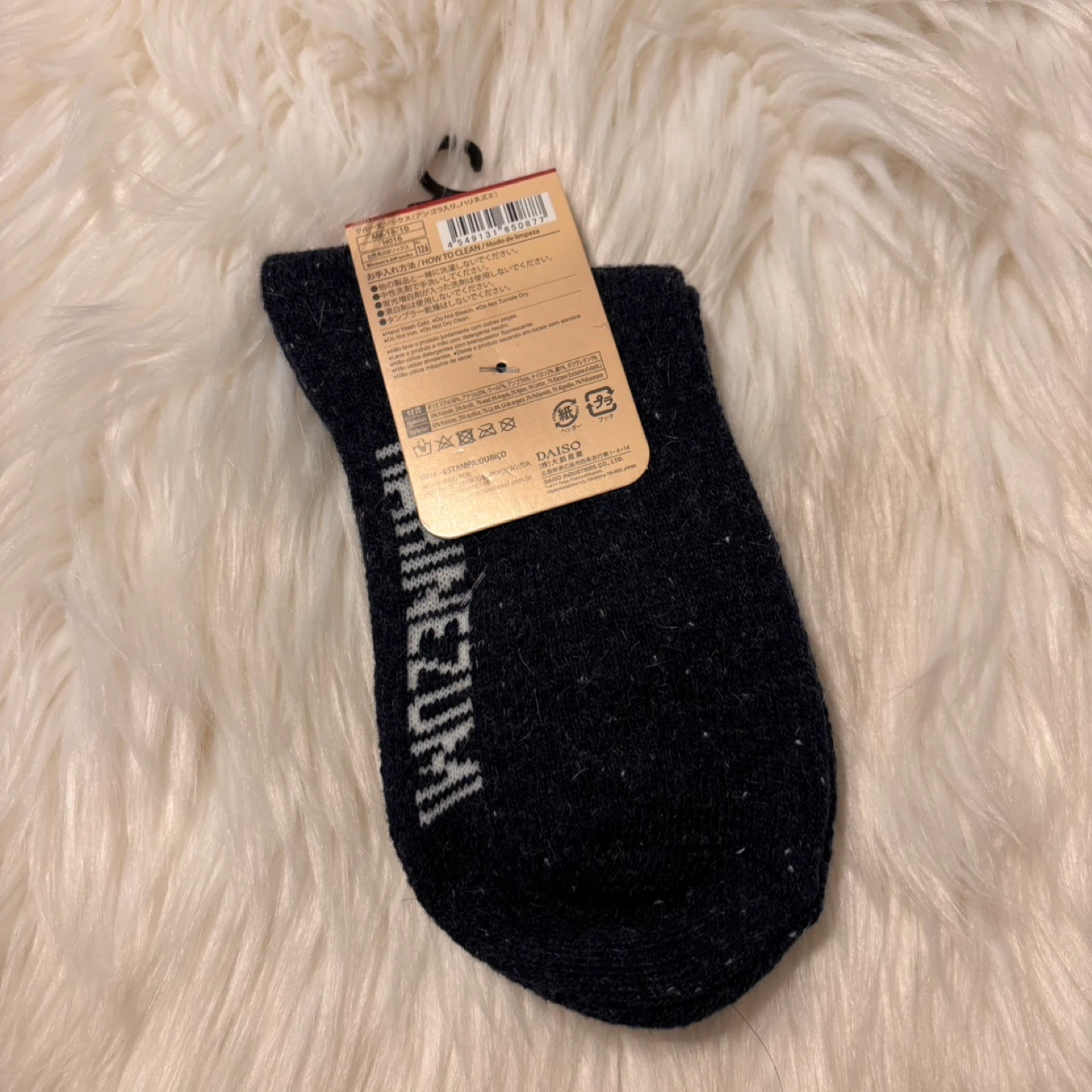 Keep your feet cozy with these adorable Daiso angora blend regular socks! They feature a cute hedgehog design and are perfect for adding a touch of fun to your everyday wear. Size 23-25cm.