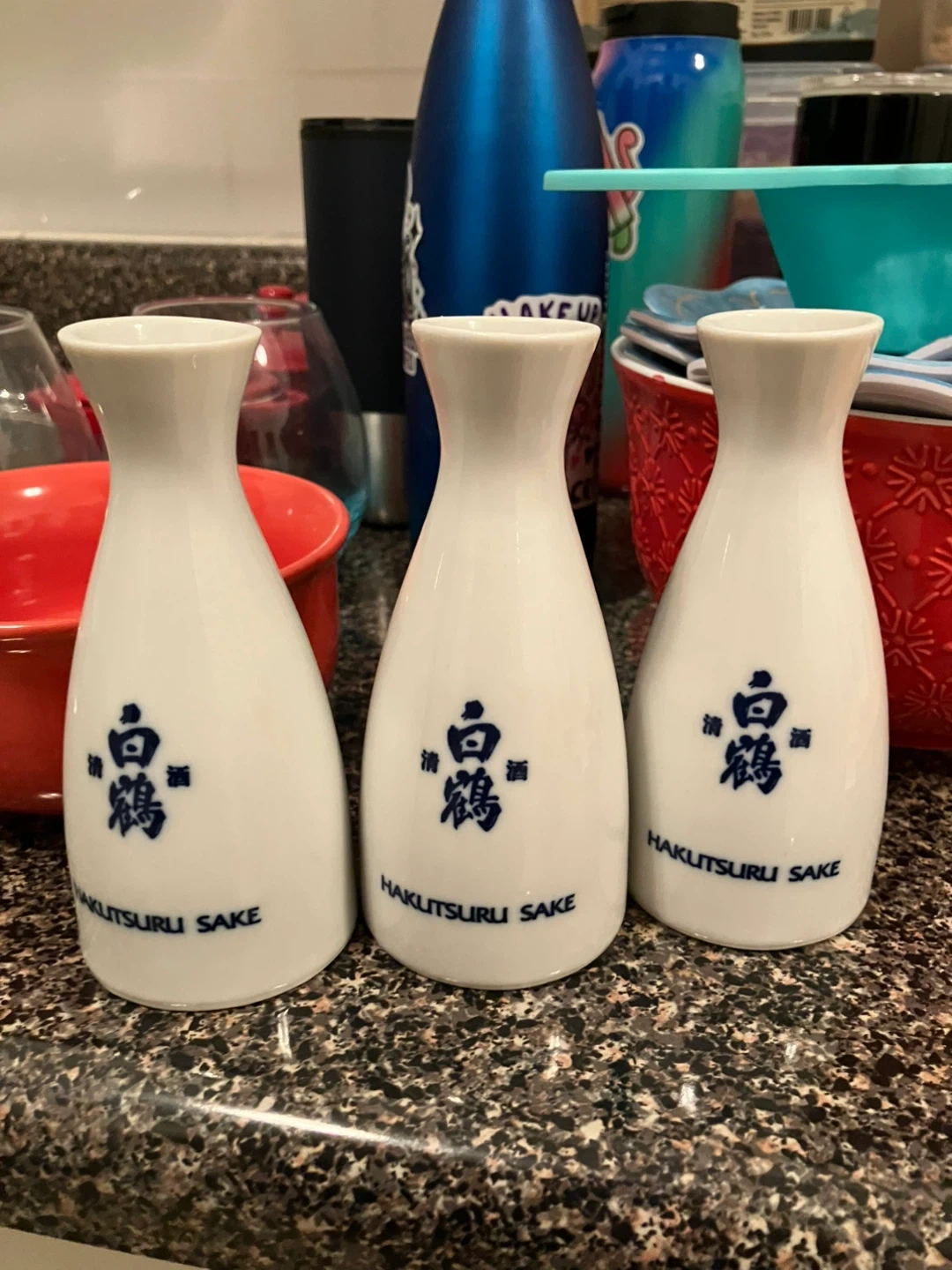 Selling a set of three Hakutsuru sake carafes! They're made in Japan and in mint condition, perfect for serving sake at your next gathering or adding a touch of Japanese culture to your home decor