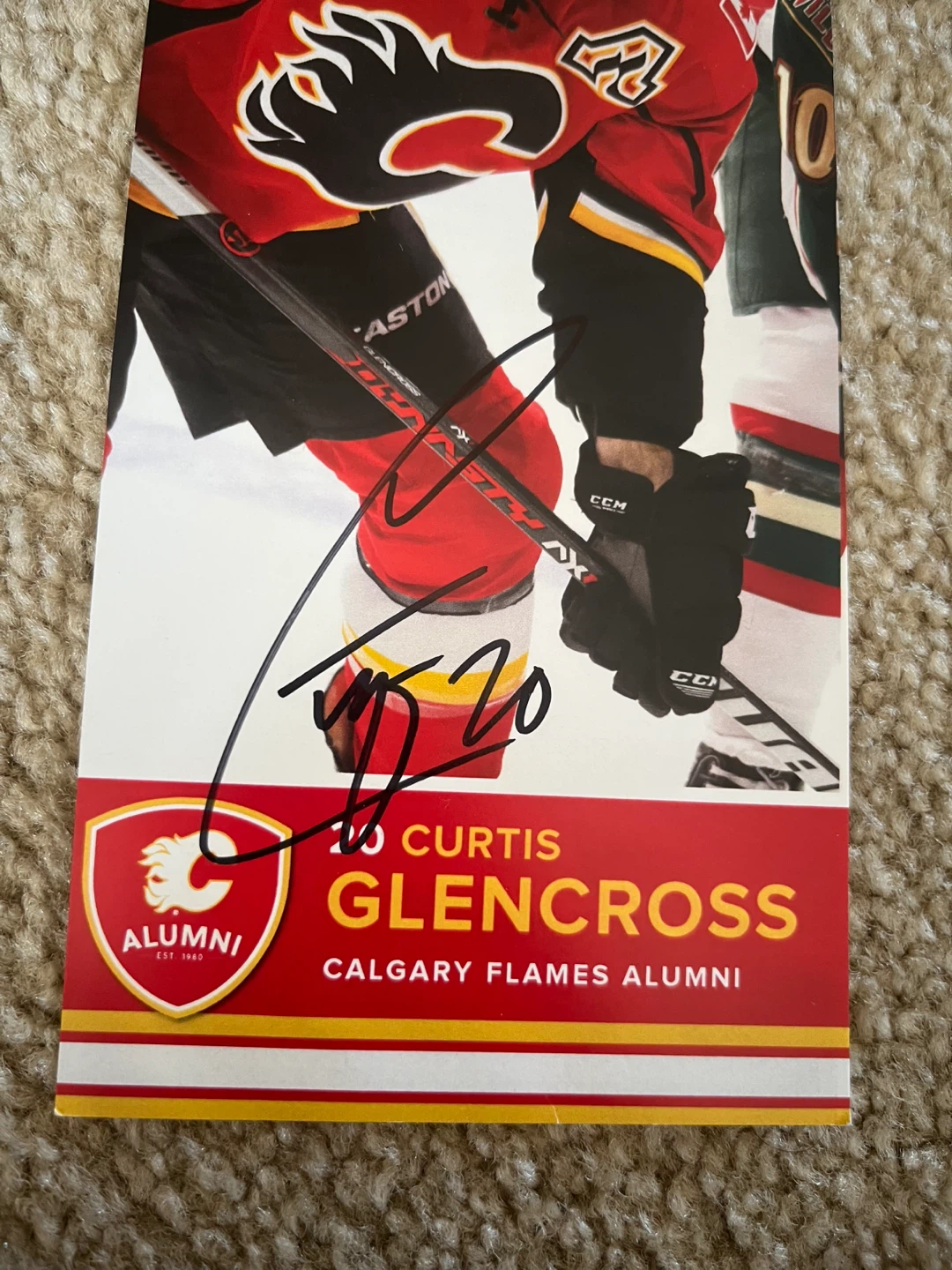 I’ve got an autographed Curtis Glencross Calgary Flames Alumni card. Great for any Flames fan or hockey memorabilia collector!