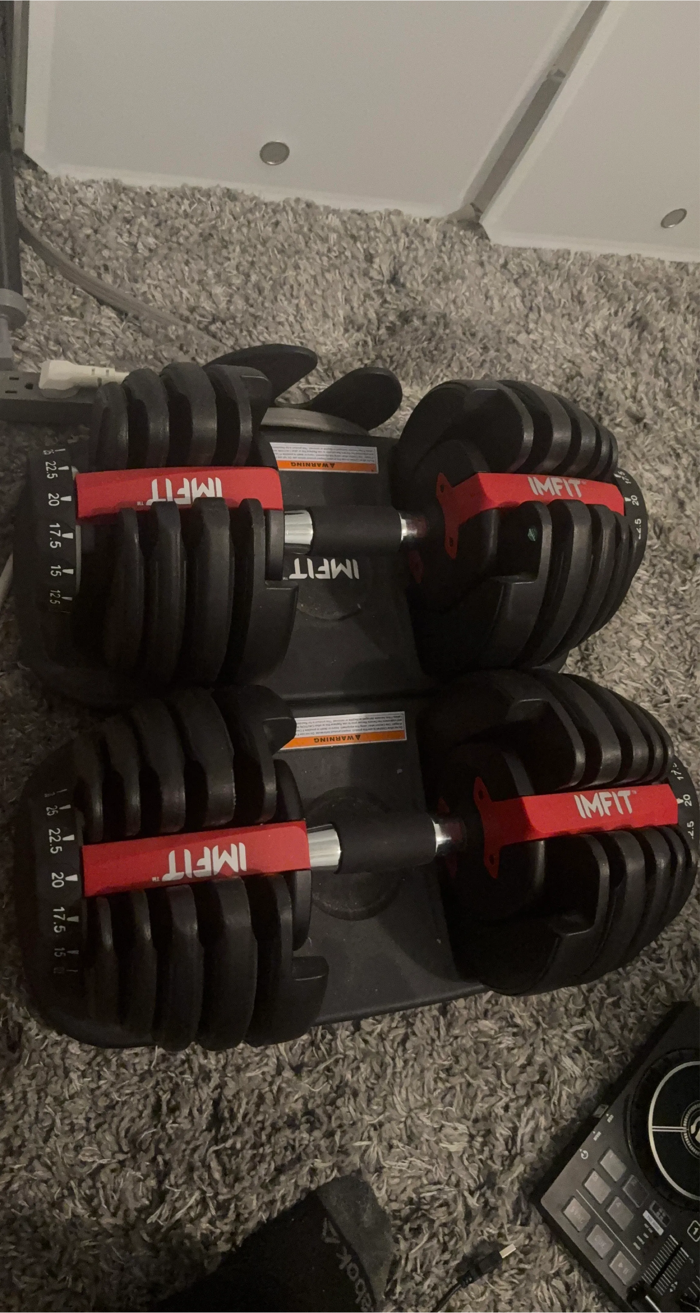 Selling a pair of iMfit adjustable dumbbells. They appear to be in good condition and ready for a new workout routine