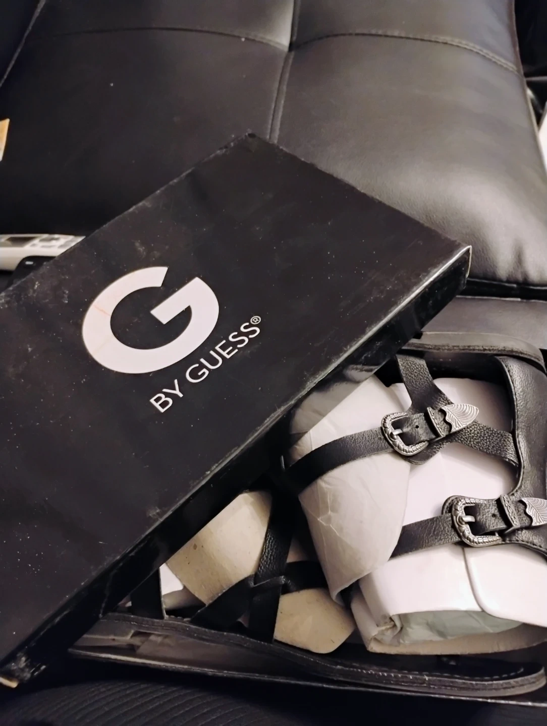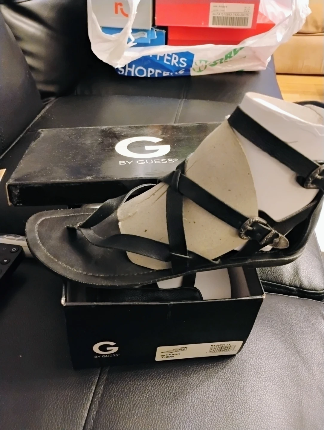 Selling a pair of G by Guess Heearn sandals in size 7.5M! They're black and come with the original box. These sandals feature a strappy design with buckle accents & are in good condition from a smoke & pet free home. Pickup from Maspeth Queens, blks from Long Island Expwy. Check out my other shoes, boots, sandals & sneakers for greater deals on multiple purchases.