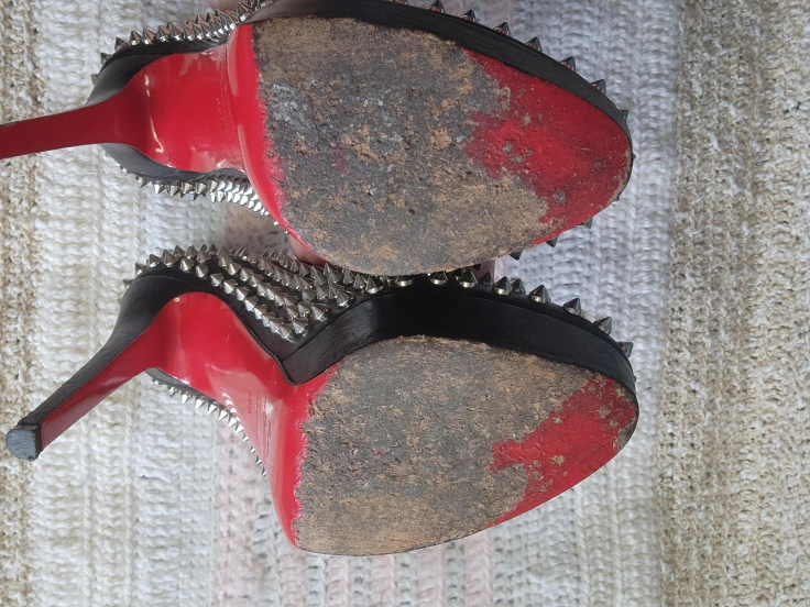 These heels are stunning and well cared for since their purchase, with only light damage on the non-visible portion of the soles from normal wear. The damage does not affect the look of the shoes when worn.