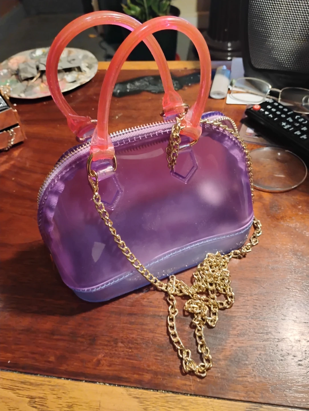 Purple Jelly Purse with Gold Chain