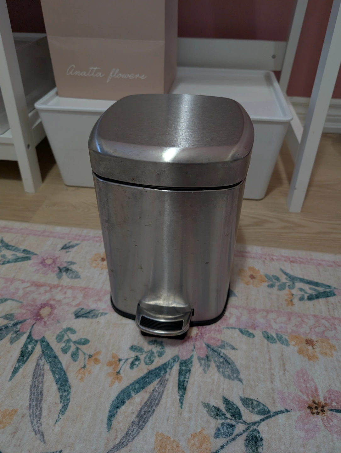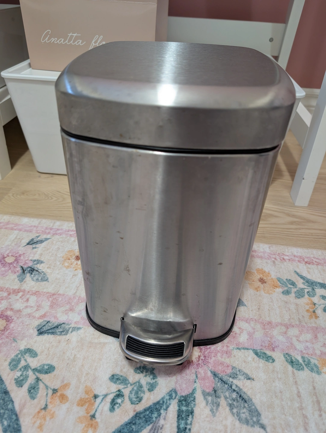 Selling a step trash can in stainless steel! It's perfect for any room in the house. Shows some signs of use but is still in good condition and fully functional.