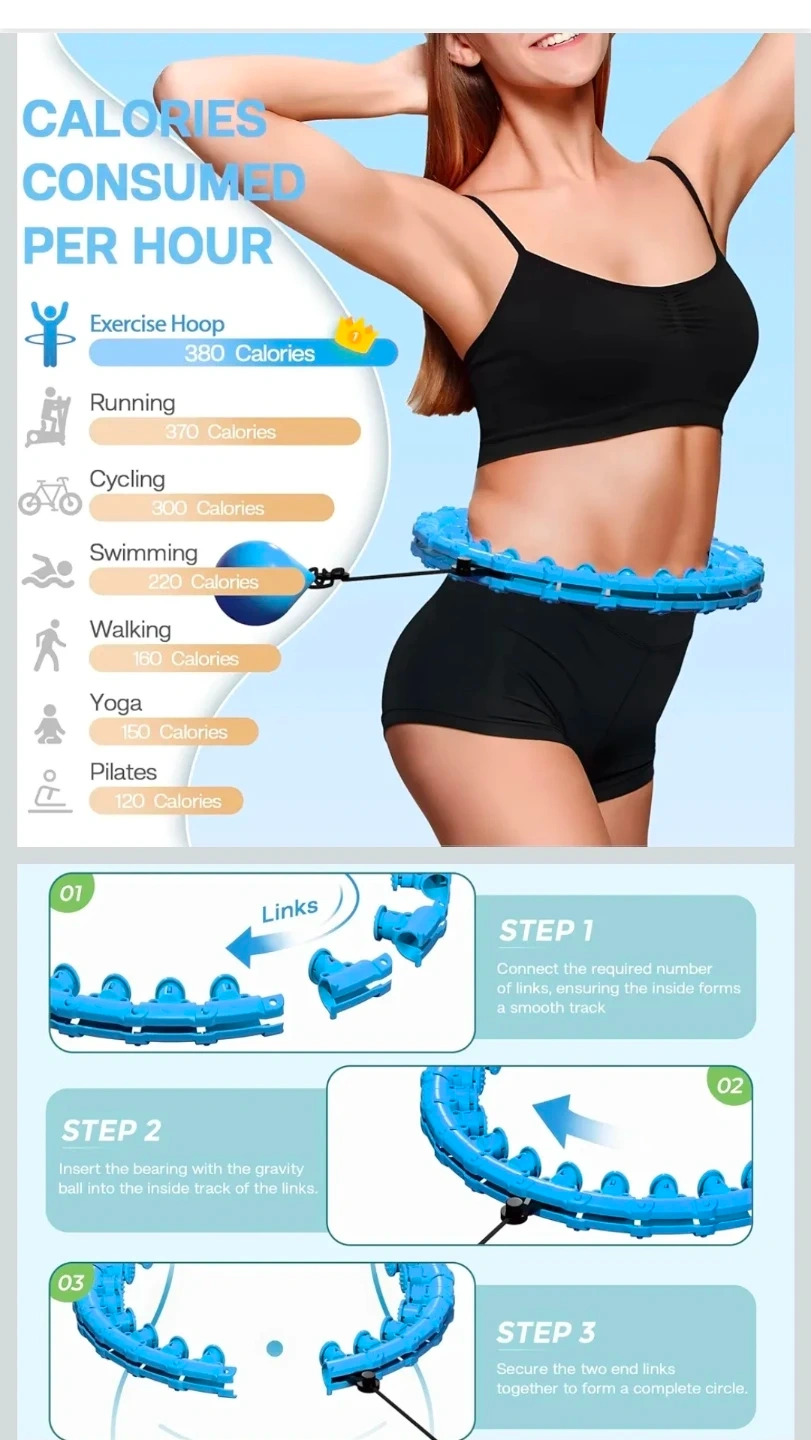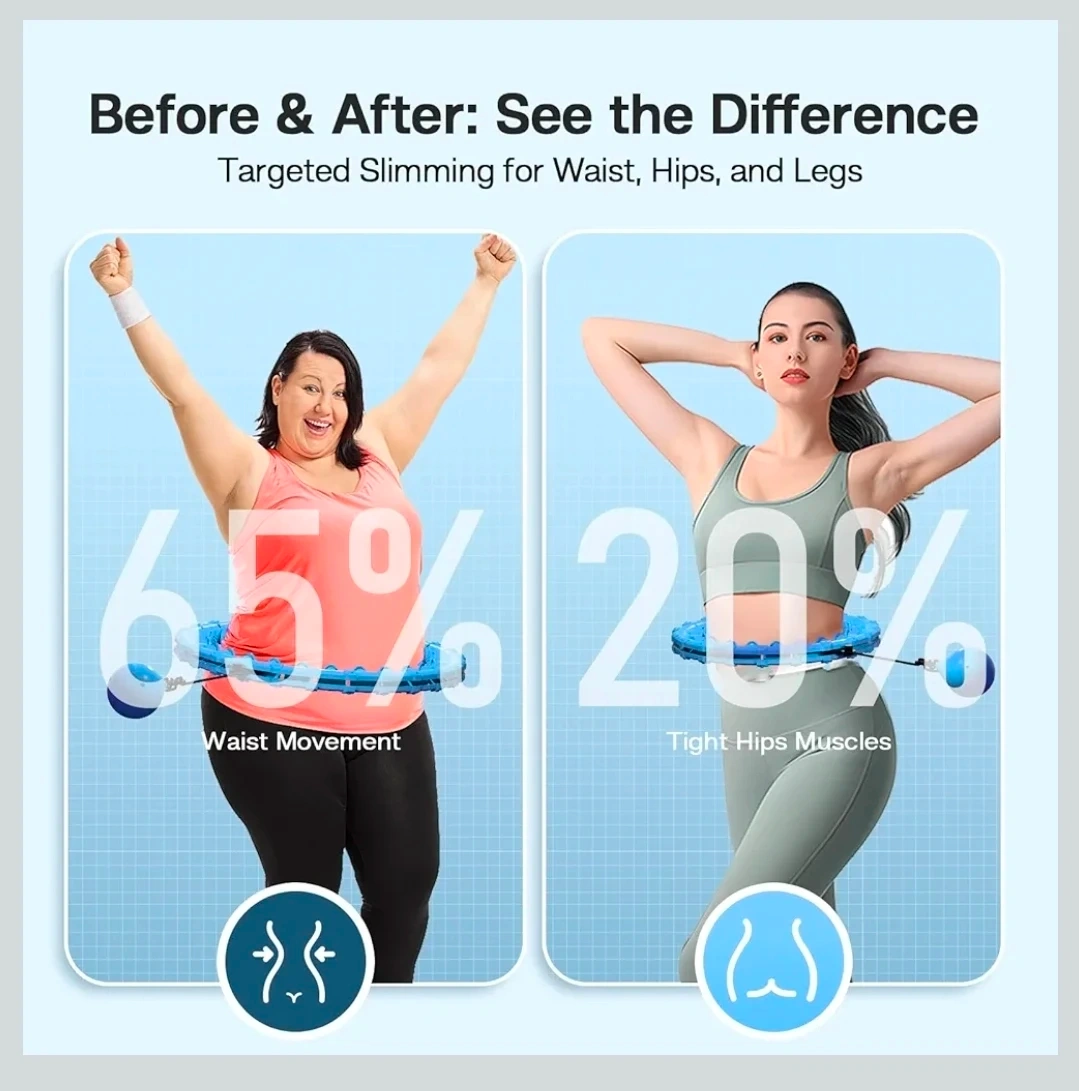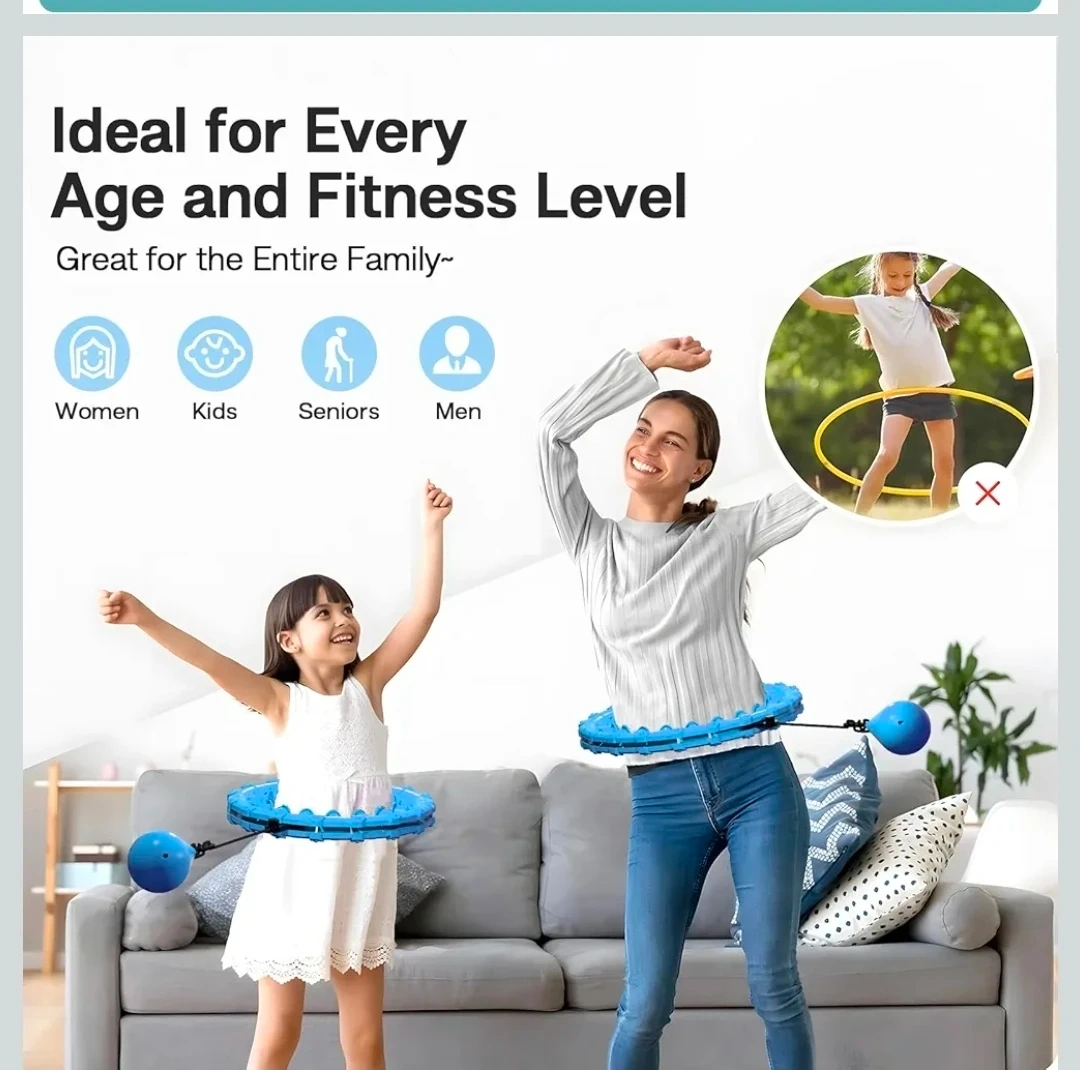 💪Fun tool for home workout----It’s easy to use and friendly to beginners and children. You can adjust the exercise intensity by adding extra moves, such as Hawaiian dance. Smart Fitness Circles do not fall from your waist, and will work every part of your body.