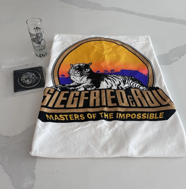 Siegfried & Roy T-Shirt, Shot glass & Pin Package