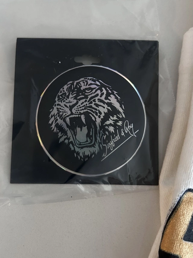 Relive the magic with this vintage Siegfried & Roy T-shirt, accompanied by a collectible shot glass and a sealed sticker, all showcasing the iconic duo's imagery. These have never been used but due to strange the t shirt is wrinkled and a couple small spots of discolouration but I’m sure it can be washed and restored to its full glory. It's a unique piece of memorabilia for a big fan. * Vintage design * Includes XL T-shirt, shot glass, and a large pin, never used still in its original packaging. Pick up in Springbank Hill