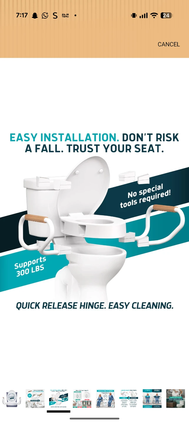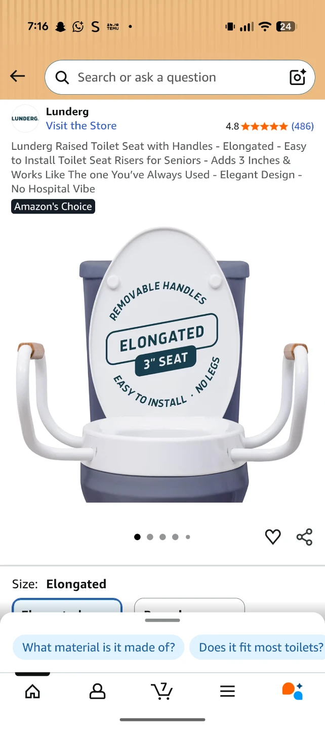 This Lunderg raised toilet seat with handles is designed to be easy to install and helps prevent falls. It supports up to 300 lbs and features a quick release hinge for easy cleaning. The seat is elongated and adds 3 inches in height.