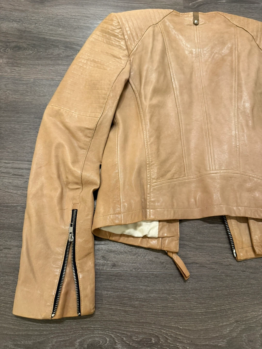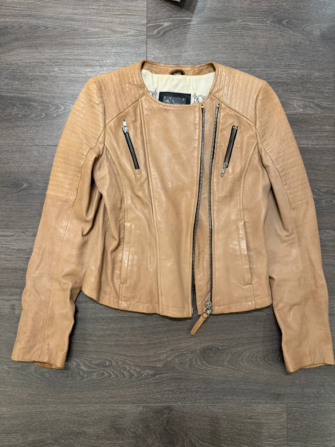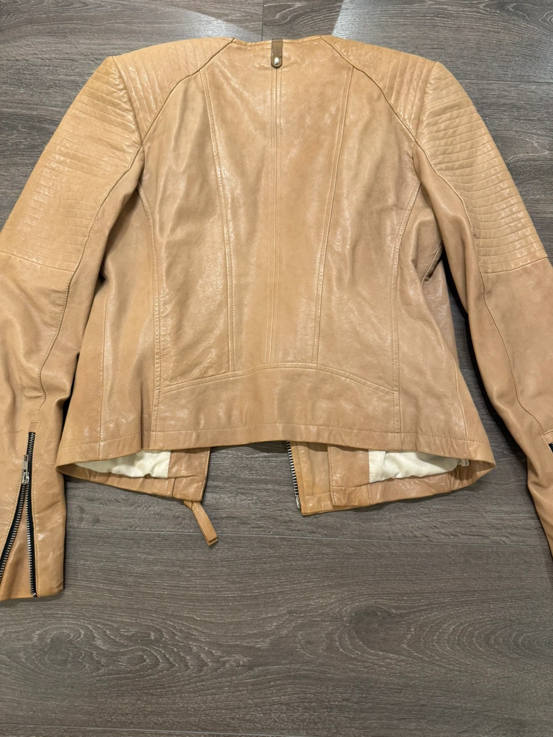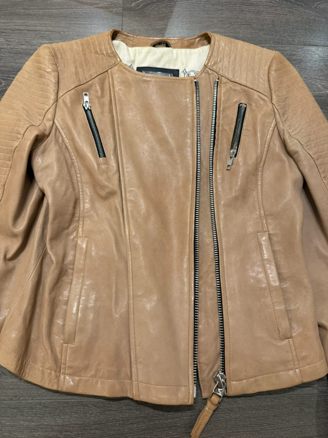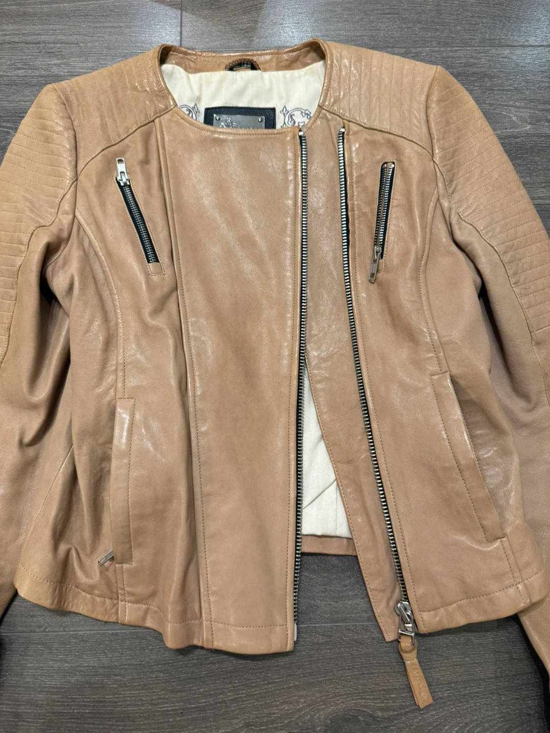 Selling a Mackage leather jacket in size small. It's a stylish piece that's been well-maintained! The jacket features a unique design with zipper accents and a comfortable fit. Perfect for adding a touch of edginess to any outfit