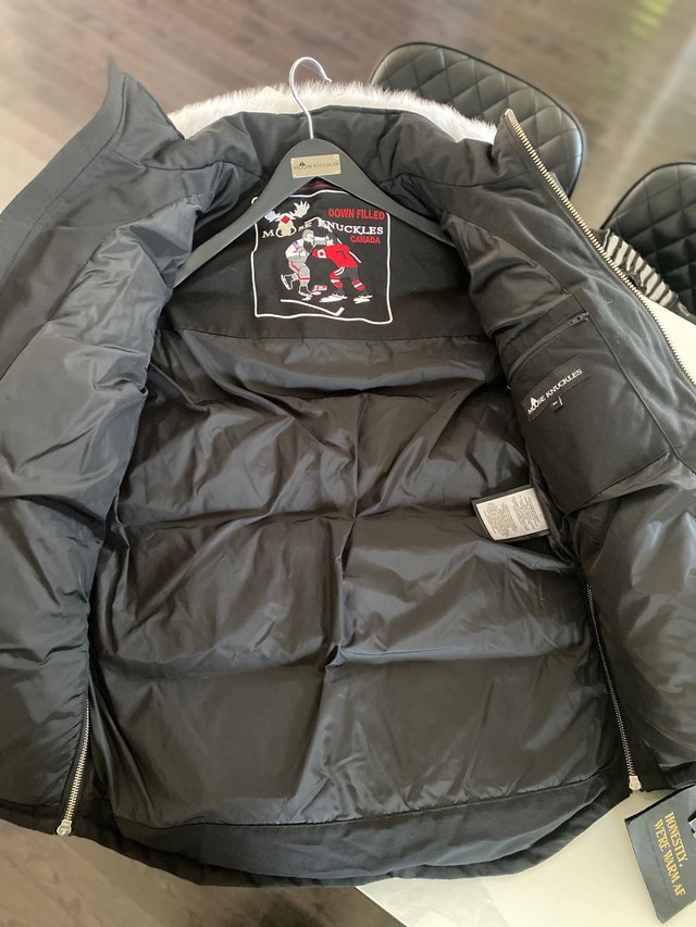 authentic new moos knuckle jackets Gray medium black small Unisex Open to trade for a bigger size for one of them XL moose knuckle, or Canada, goose or other high end jackets