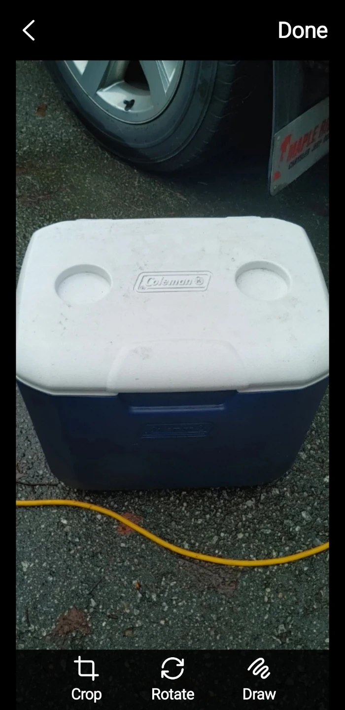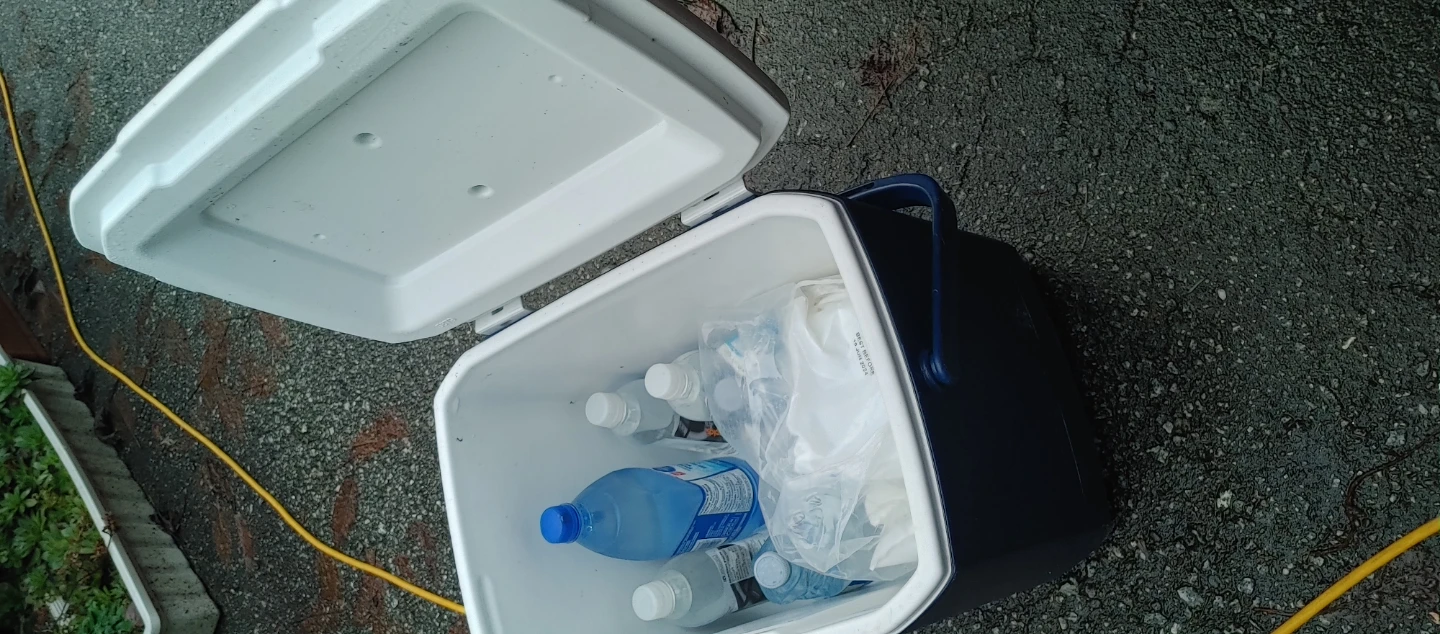 Selling a Coleman cooler that includes many reusable ice packs and bottles of water.