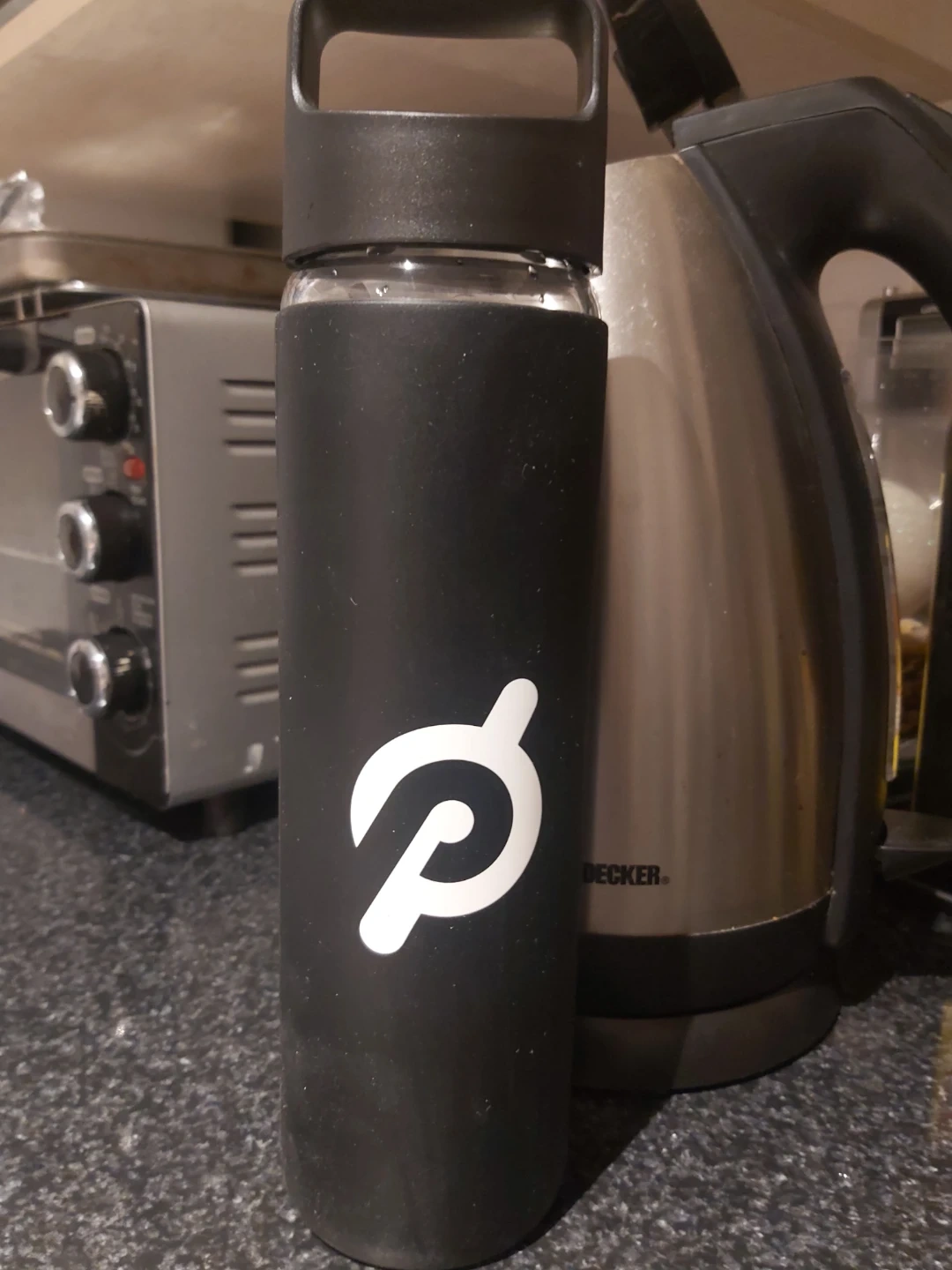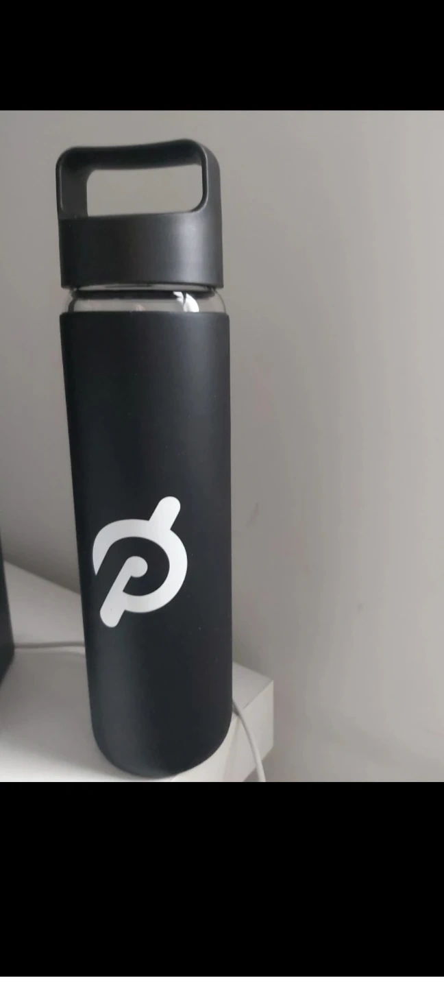 Selling a Peloton glass water bottle in black. It comes with the original box. Perfect for staying hydrated during your workouts!