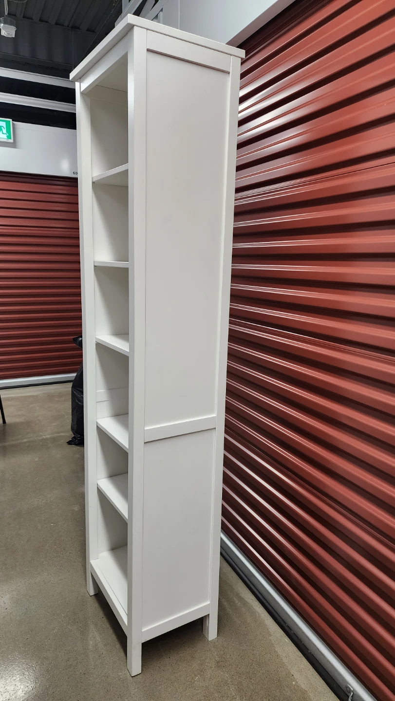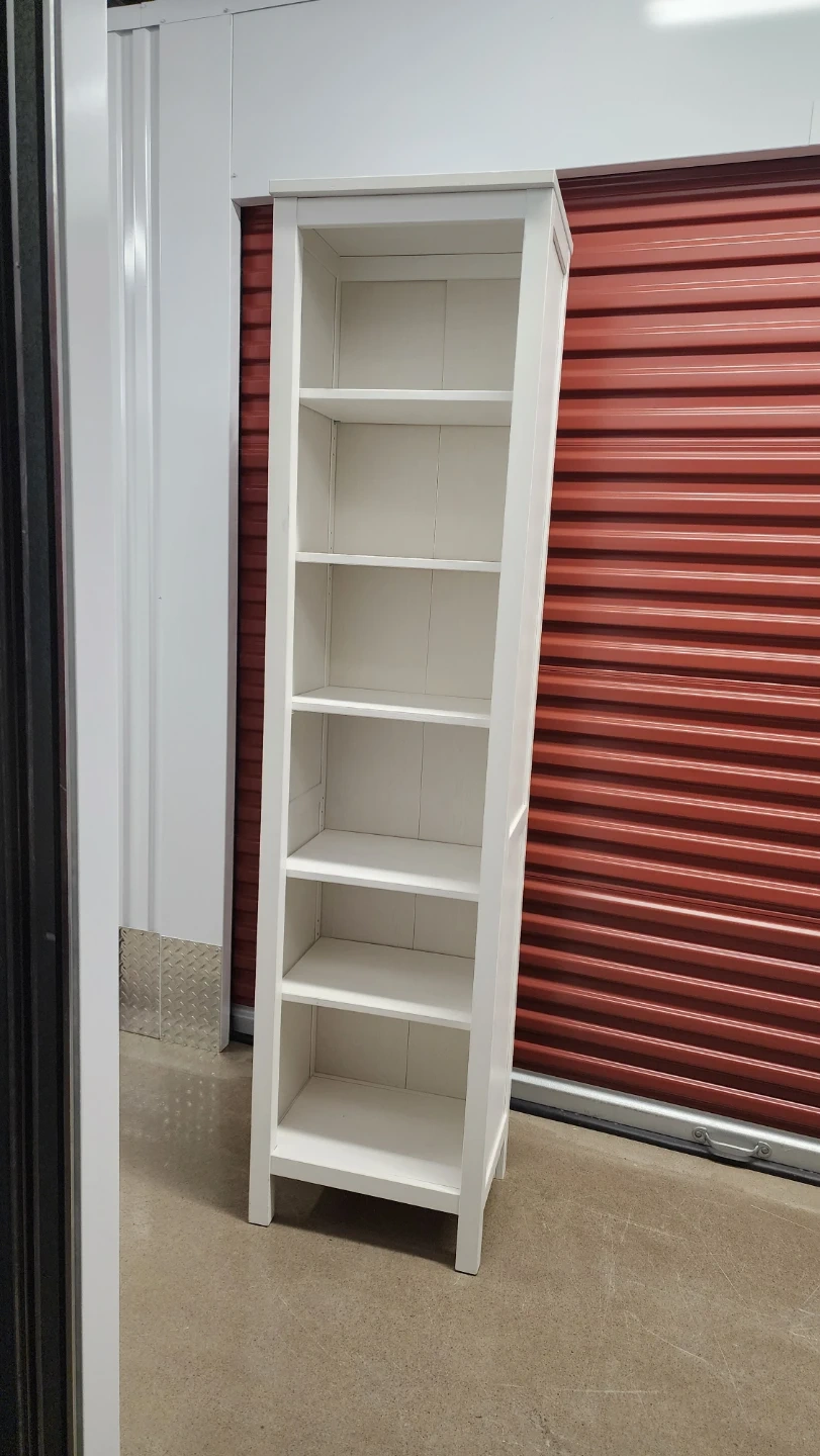 Here's a simple white bookcase, perfect for adding some extra storage to any room! The dimensions are approximately 78 inches tall, 19 inches wide, and 13 inches deep. It's in great shape and ready to hold your books, plants, or whatever you need to organize