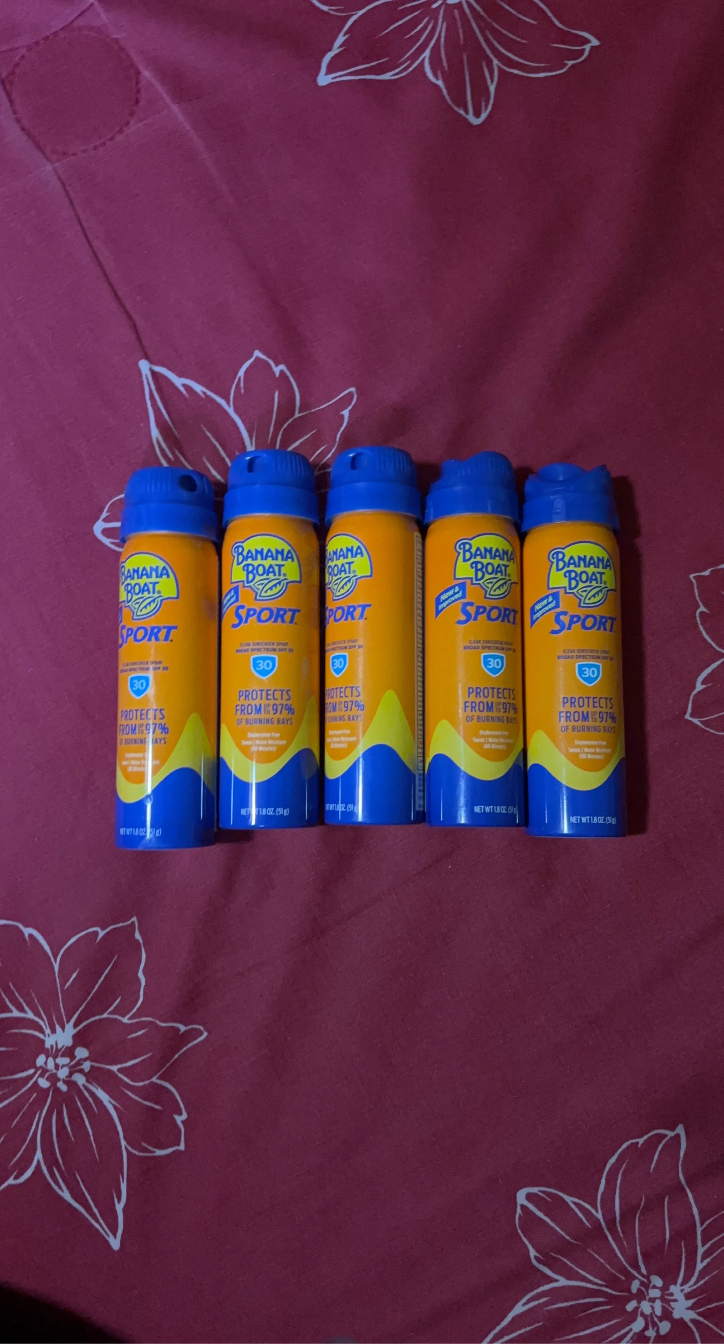 I'm selling several cans of Banana Boat Sport sunscreen with SPF 30! They protect from 97% of burning rays. Each can contains 1.8 oz (51g) of sunscreen. Perfect for outdoor activities and staying protected in the sun