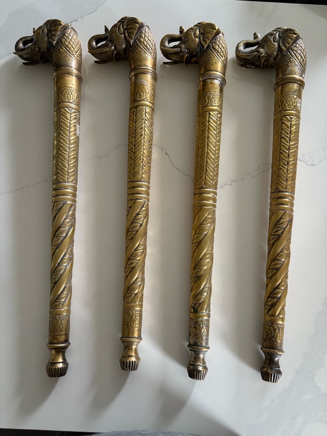 1940s 4 Indian Ceremonial Elephant Head Maces Brass Deccan Region 22.5" ANTIQUE MUGHAL INDIAN SOONTA CEREMONIAL MACES STAFF Scepter Mughal Silver