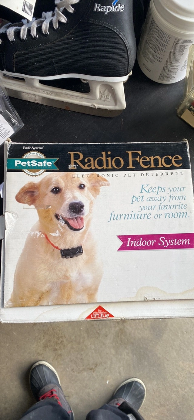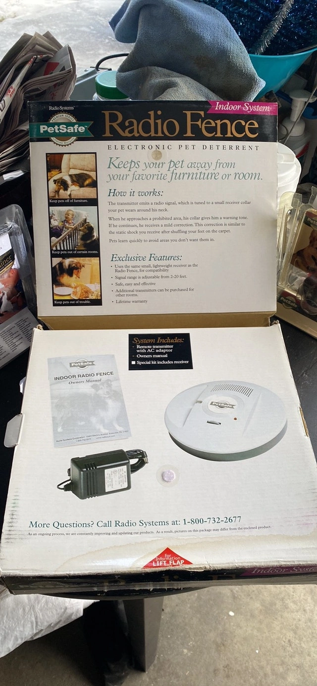 1 - Petsafe Radio Fence electronic pet deterrent Indoor system. Keeps your pet away from your favourite furniture. $100. Petsafe Deluxe ultralight receiver is used with Petsafe radio fence. $100