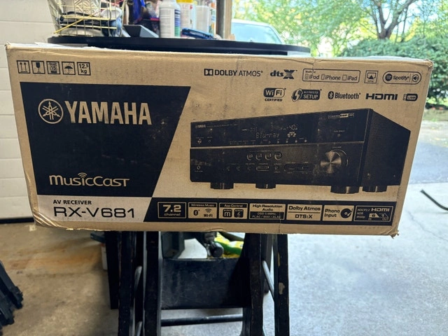 Selling mint Yamaha RX-V681 7.2-channel AV receiver with Dolby Atmos and 4K Ultra HD support, this unit delivers immersive audio and video experiences. It functions perfectly, making it ideal for home theatre enthusiasts looking for high-quality performance without breaking the bank. Key Features: * 7.2 Channel * Dolby Atmos * 4K Ultra HD Support * MusicCast If the ad is up, the receiver is available!