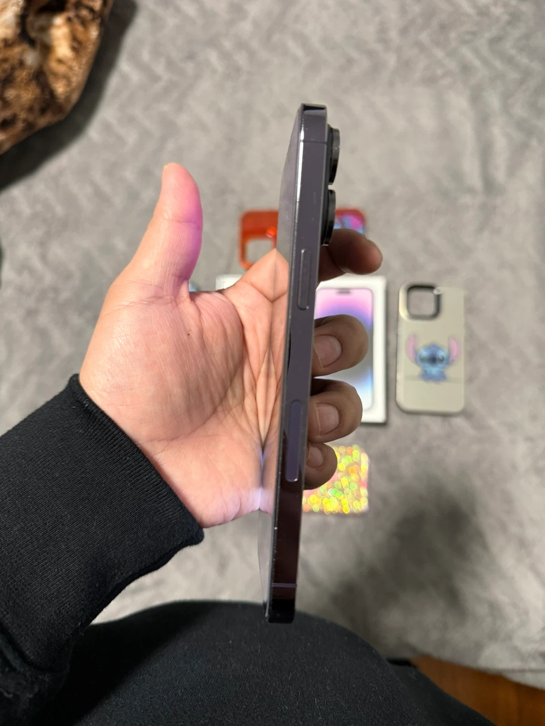 Selling my iPhone 14 Pro Max in Deep Purple! It's in great condition and comes with a box and phone cases. Feel free to ask any questions!