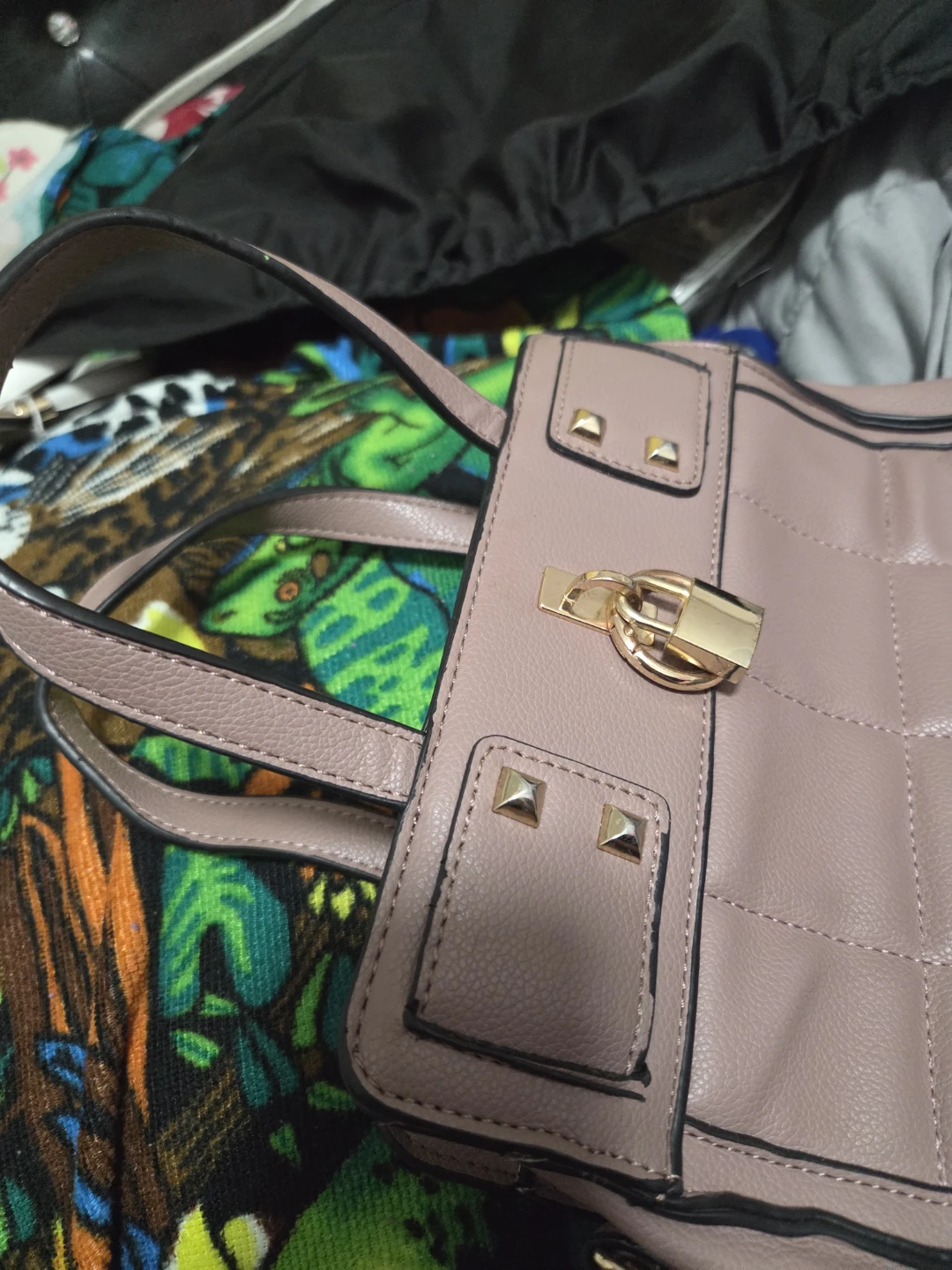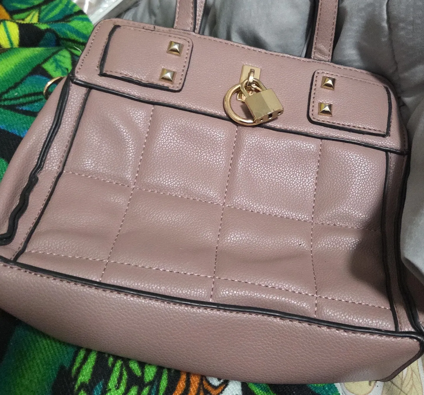 This is a cute pink quilted handbag. It's a stylish and practical accessory for everyday use. The bag features a unique quilted design with gold-tone hardware, adding a touch of elegance. It's in great condition and ready for a new owner!