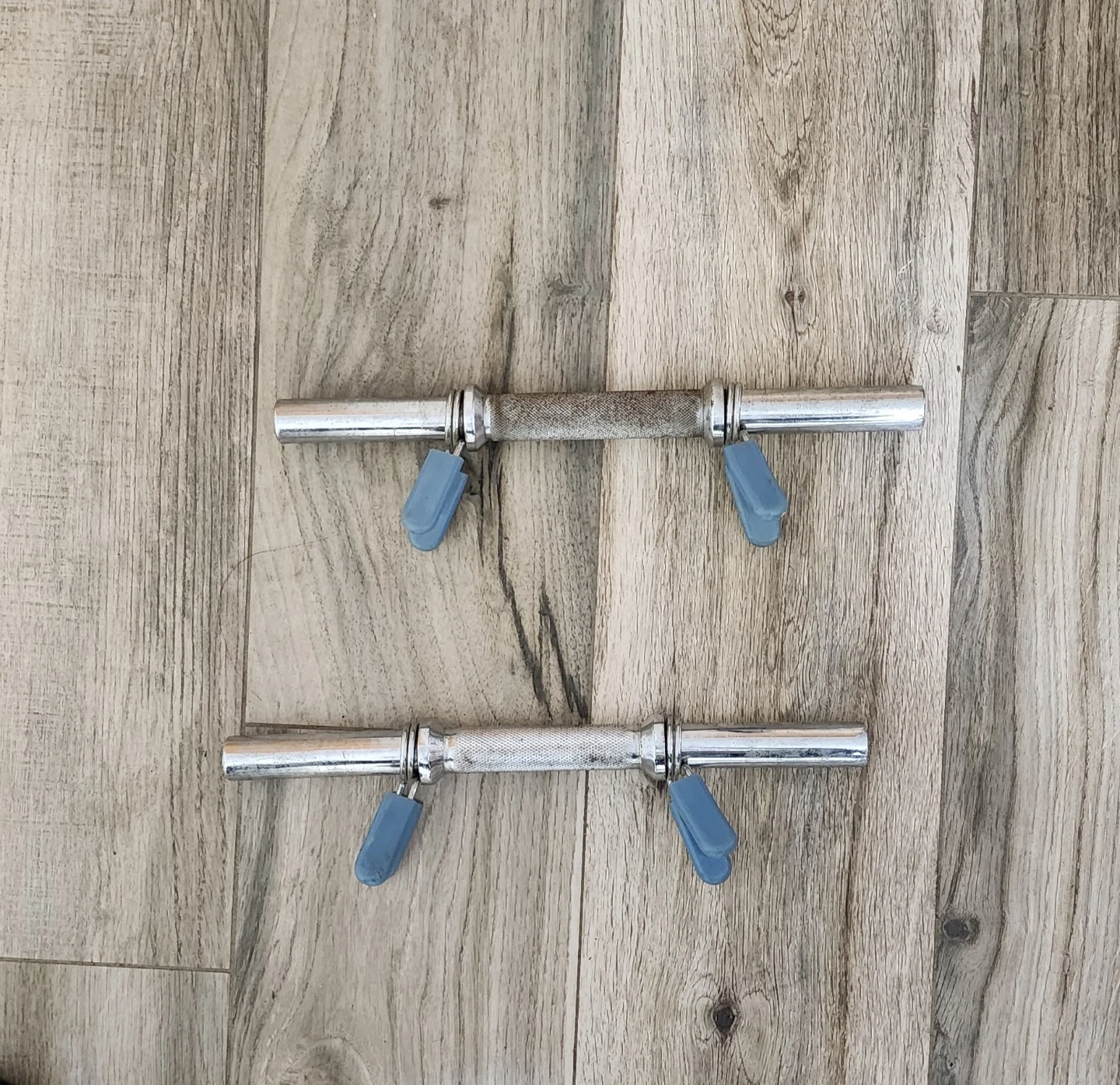 Selling a pair of dumbbell handles. They are in used condition, as shown in the photos. Perfect for building your home gym!