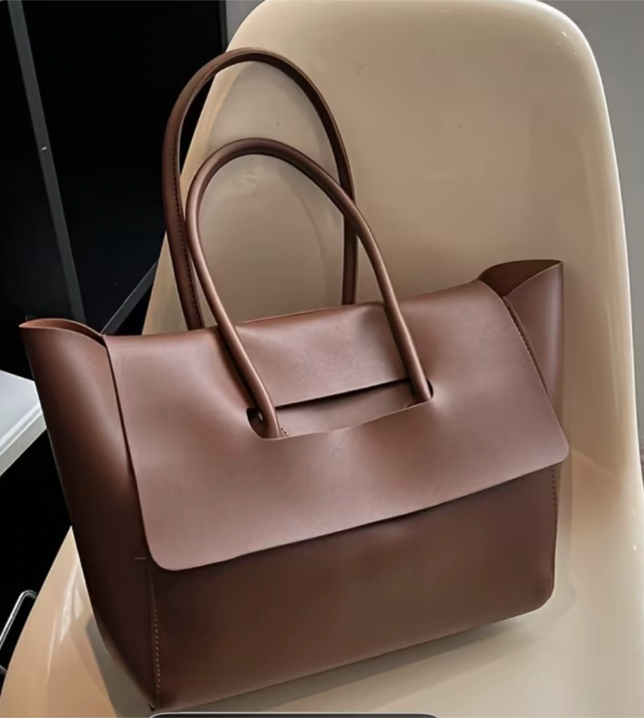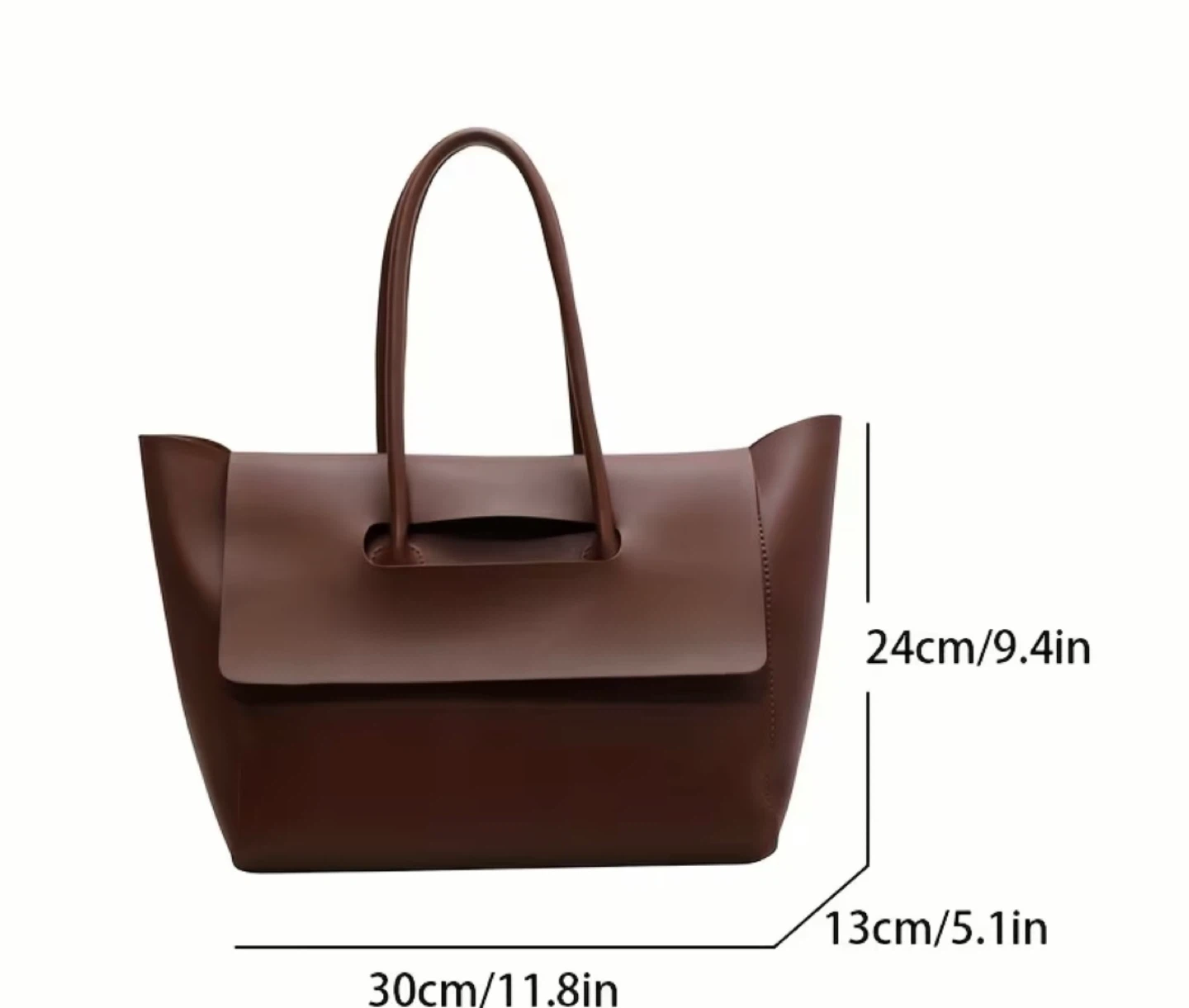 Here's a stylish brown tote bag! It measures approximately 11.8 inches in length and 9.4 inches in height, making it a great size for everyday use