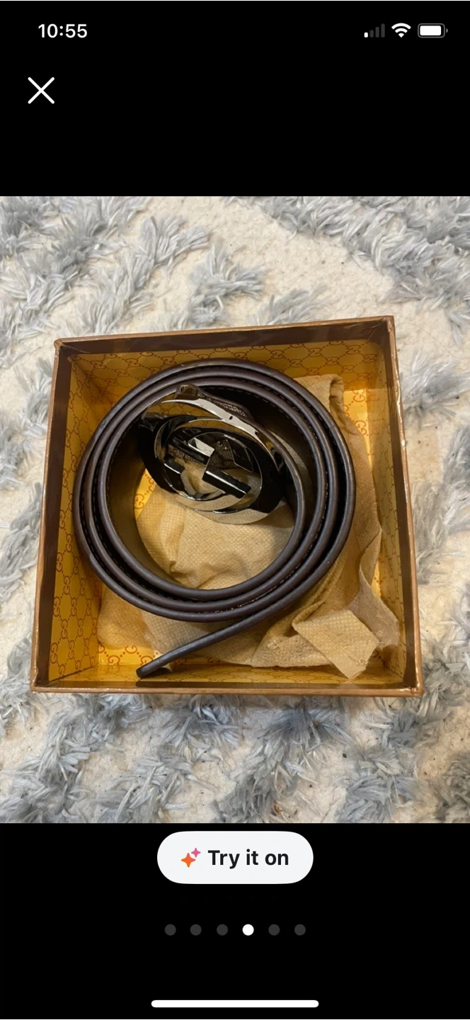 Selling a Gucci belt that's in good condition. It comes with the original box. The belt features the classic Gucci pattern and a silver-tone buckle.
