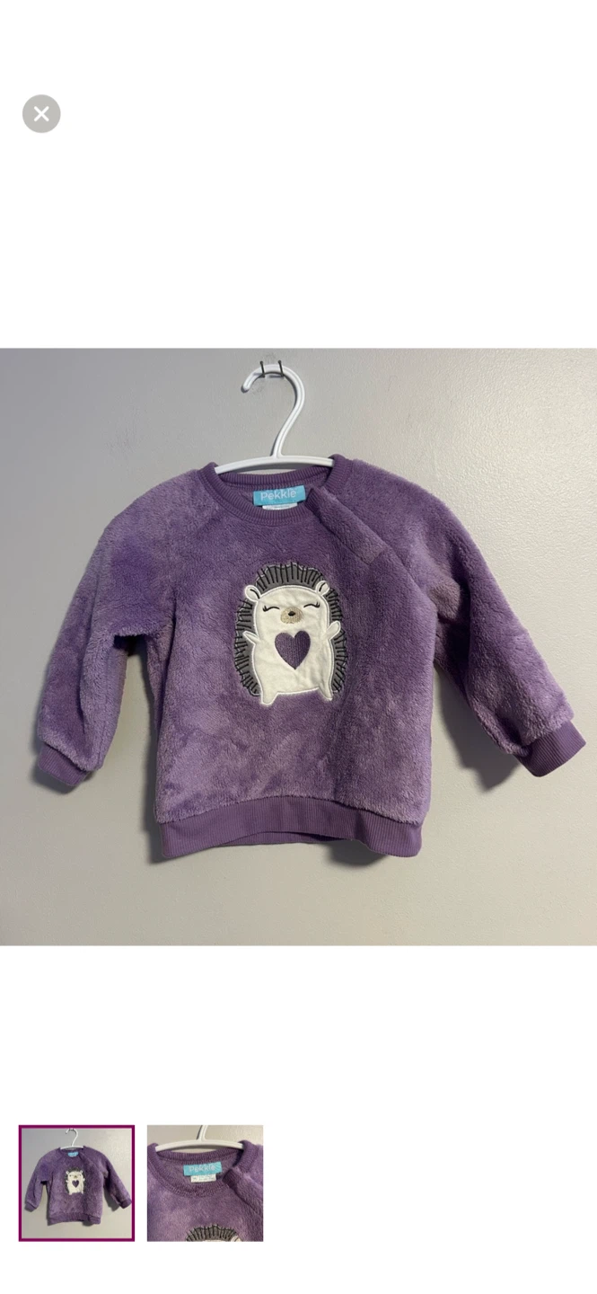 Pekkle brand. Pullover Sherpa sweater. Purple with embroidered hedgehog . Size 9m. Brand new condition