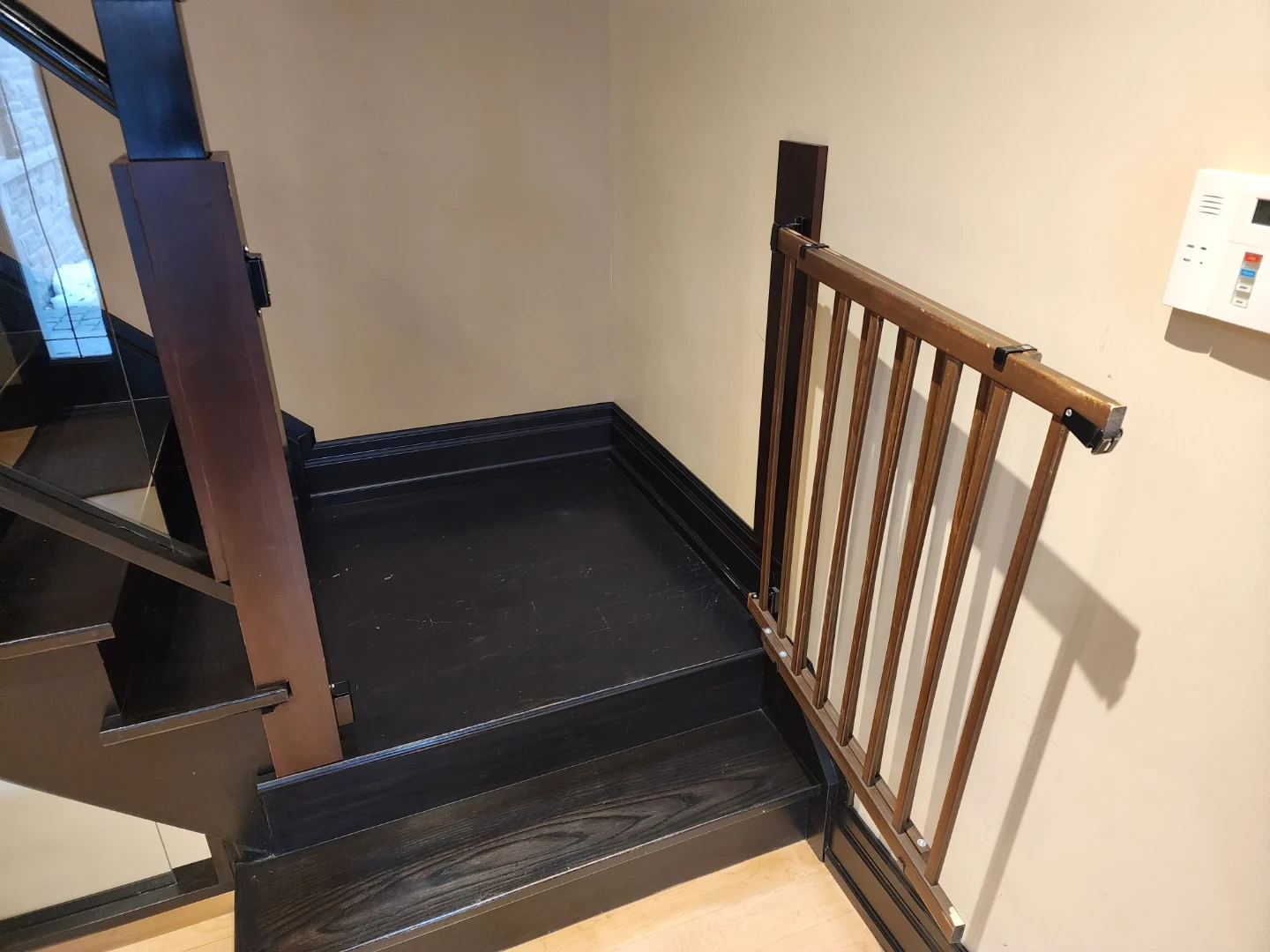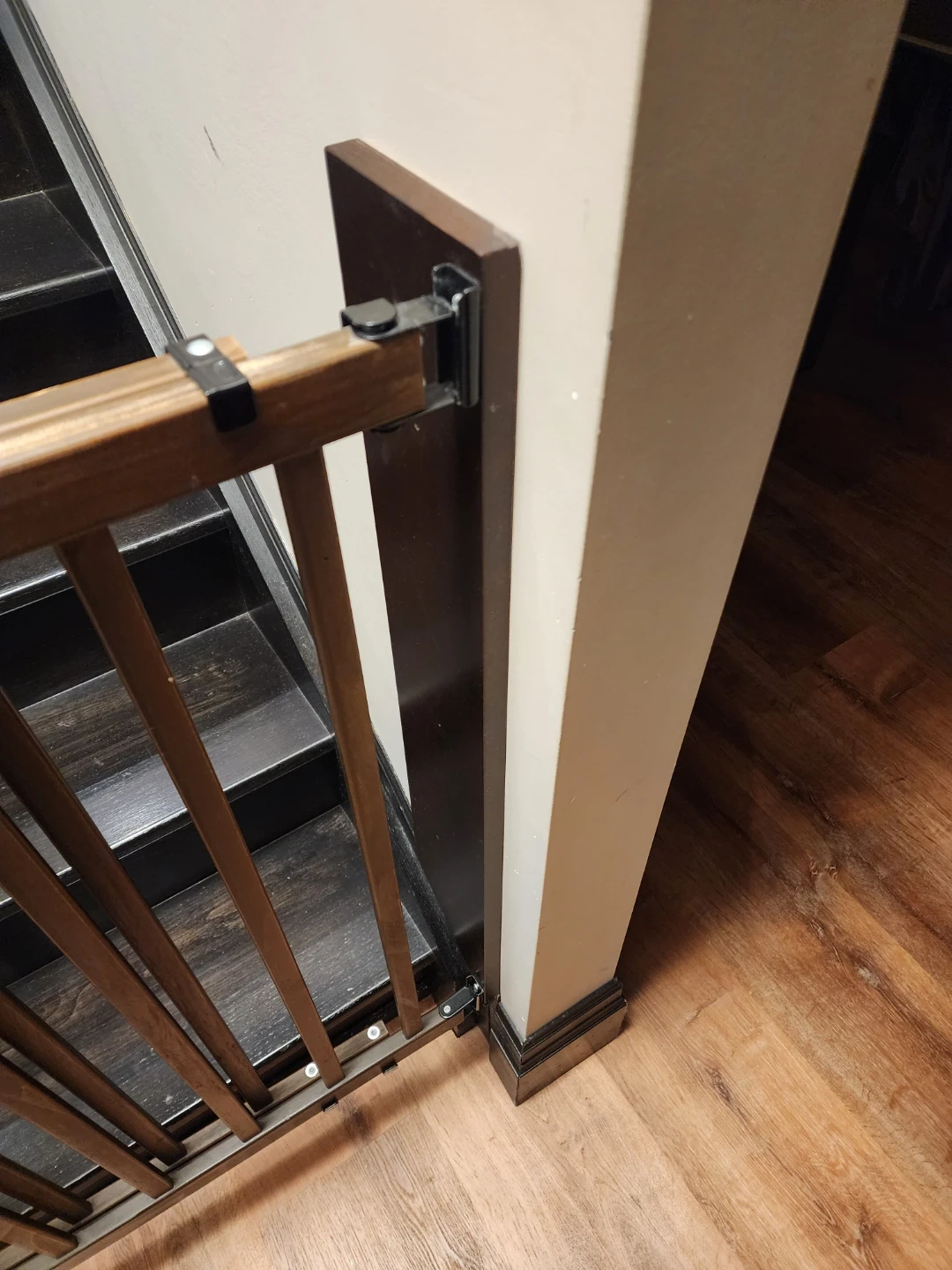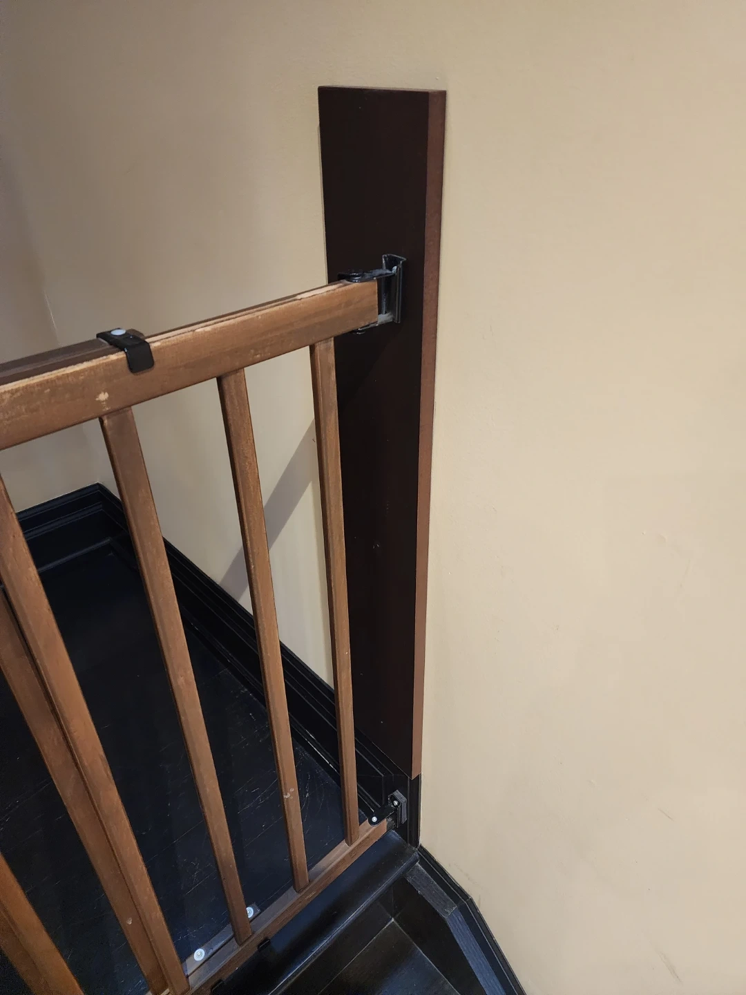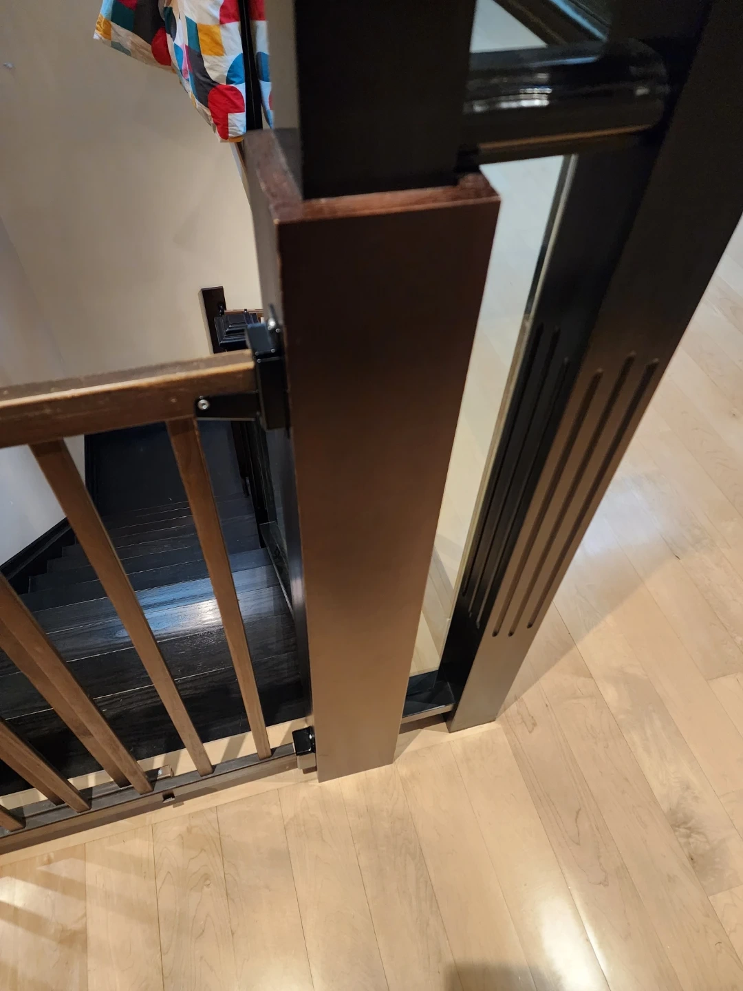 Evenflo Top-of-Stairs Gate, Natural Wood. 4 sets of gates. Bought from canadian tire and then custom installed. Total project cost was over $2000. Customer shrouded built for wood posts so posts would no be damaged with wood Gate instalation. This sale includes 4 gates that are up to 48" wide. 6 post shrouded and 2 wall mounts. So you get 2 top of stairs gates and mounts and two bottom of the stairs gates and mounts. The gates themselves, you can buy brand new from canadian tire for a $130 + plus tax. Or take all 4 from me and the post protectors. And wall mounts for $400.
