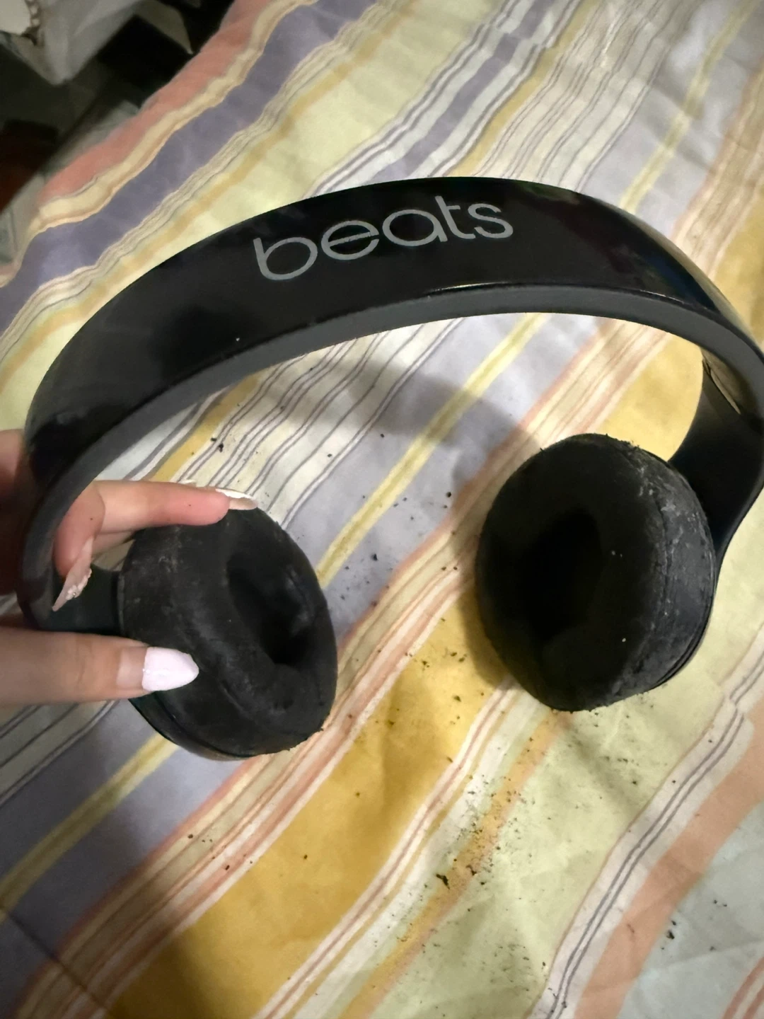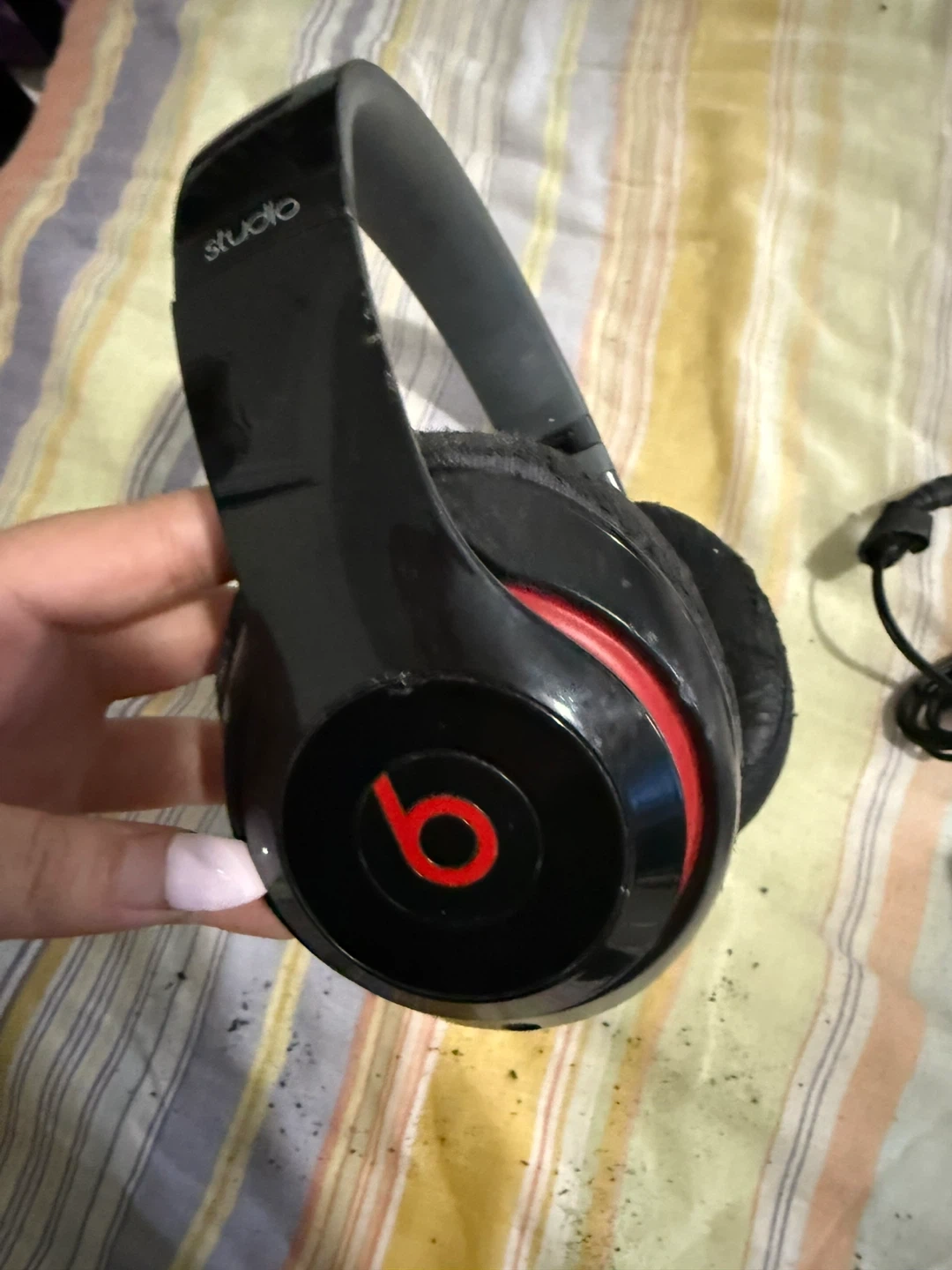 Selling a pair of Beats Studio headphones in black. They show some signs of wear on the earcups, but they still work great! Perfect for enjoying your favorite music.