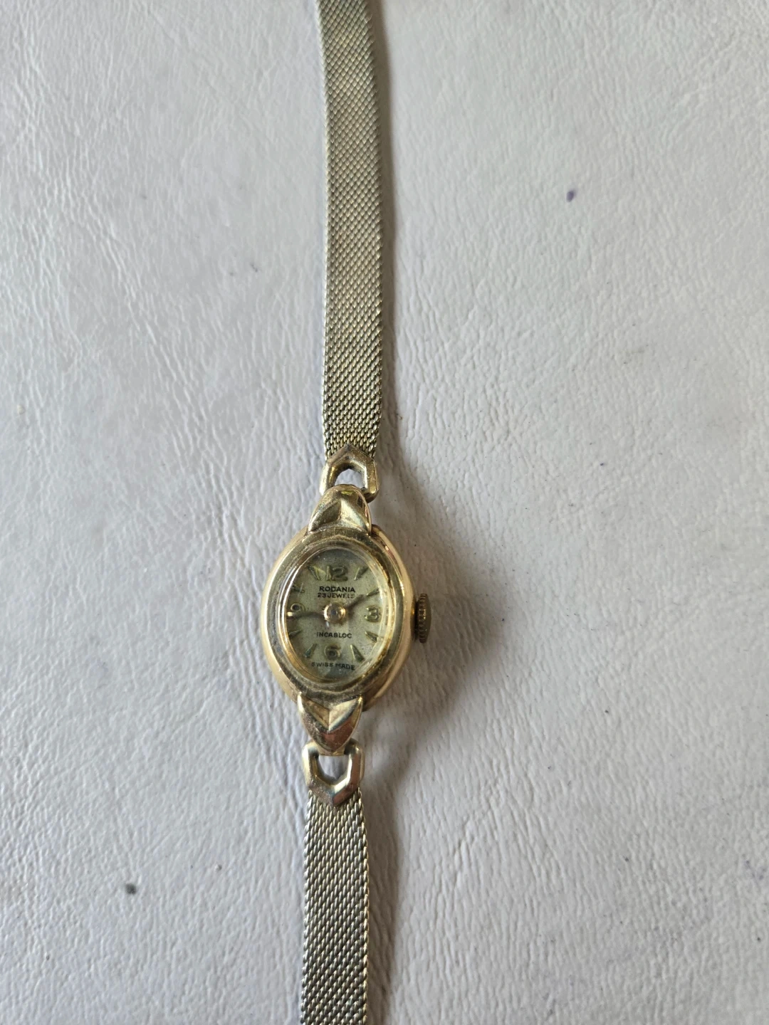 Selling a vintage Rodania ladies watch. It has a gold-tone finish and a mesh band. The watch face is small and elegant, perfect for adding a touch of vintage charm to your look
