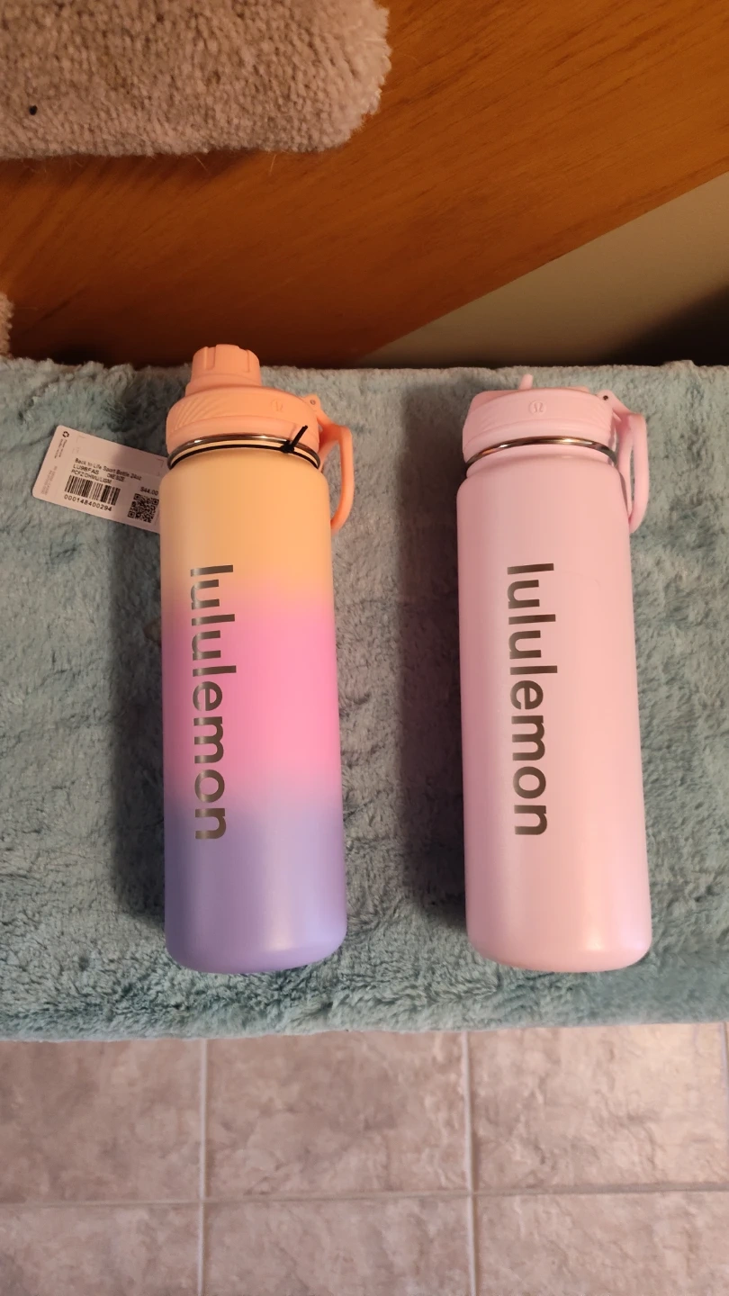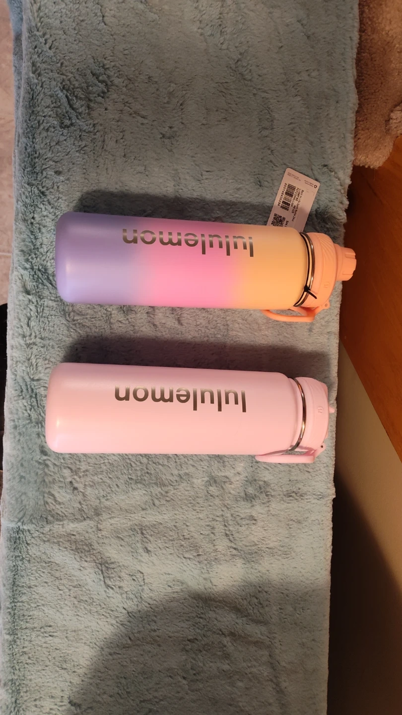 I'm selling new Lululemon water bottles! The solid pink bottle is available and the other ombre colour is Sold. Both are in perfect condition and ready for a new owner. Asking $40. Obo each. These are brand new and have never been used. The Pink one retails for $48.. plus. It has a flip top and carry handle. 24 oz bottle.