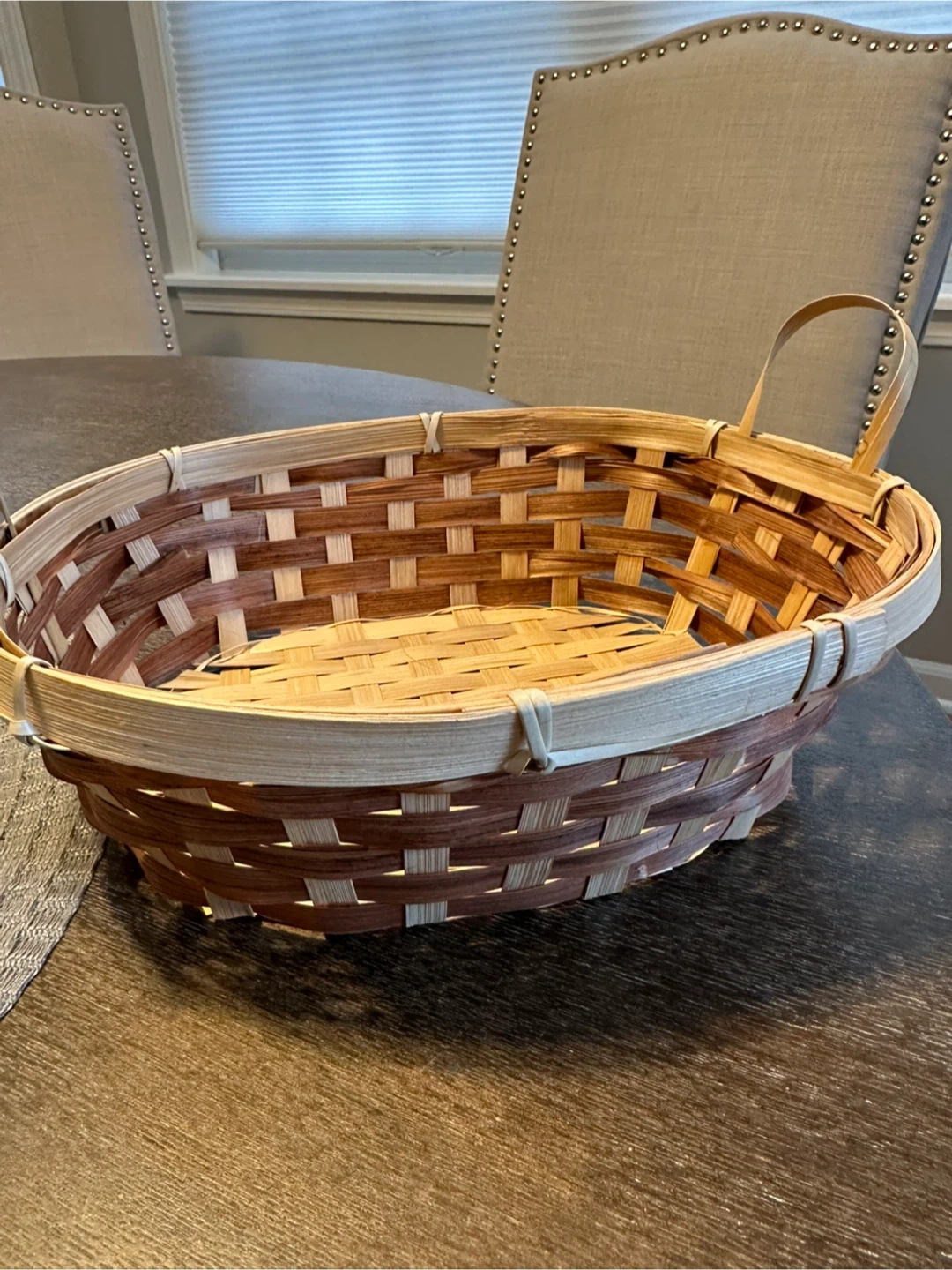Giving away a woven wood basket. It's in great condition and ready for a new home! Perfect for storage or decor.