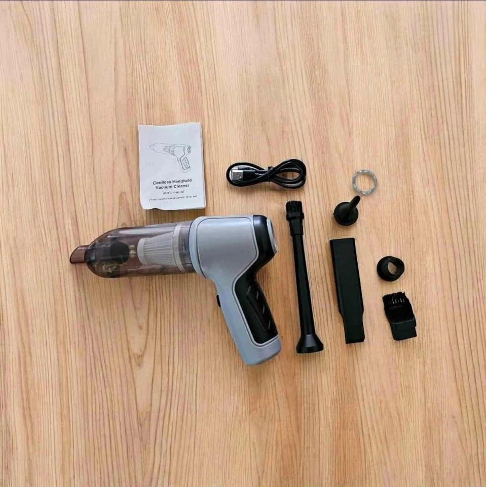 Brand new 2-in-1 vacuum and blower with multiple attachments for indoor and outdoor use. It's wireless, has 9000pa suction power and 0.4L dust capacity. Comes with a C-type USB charging cable.