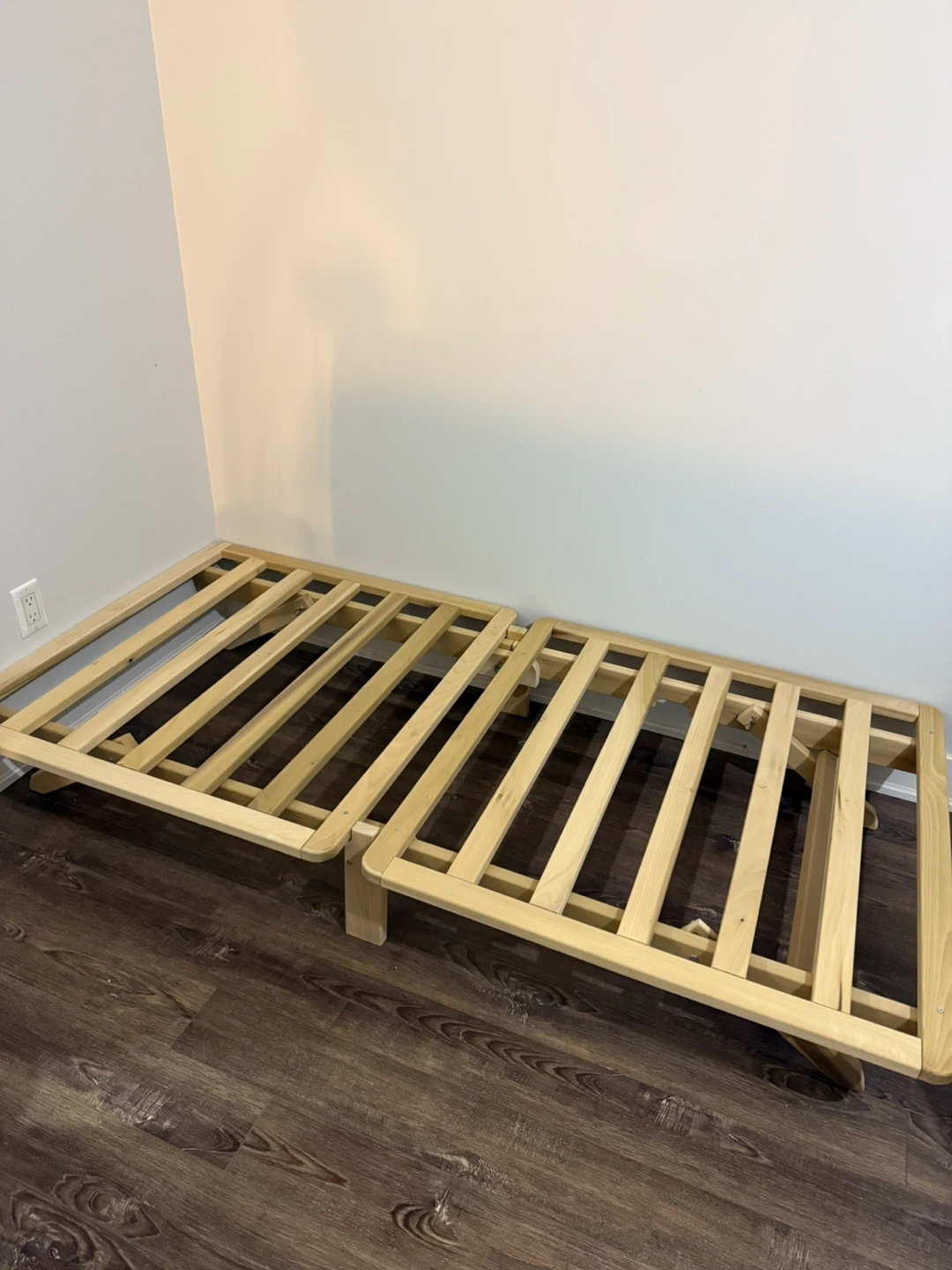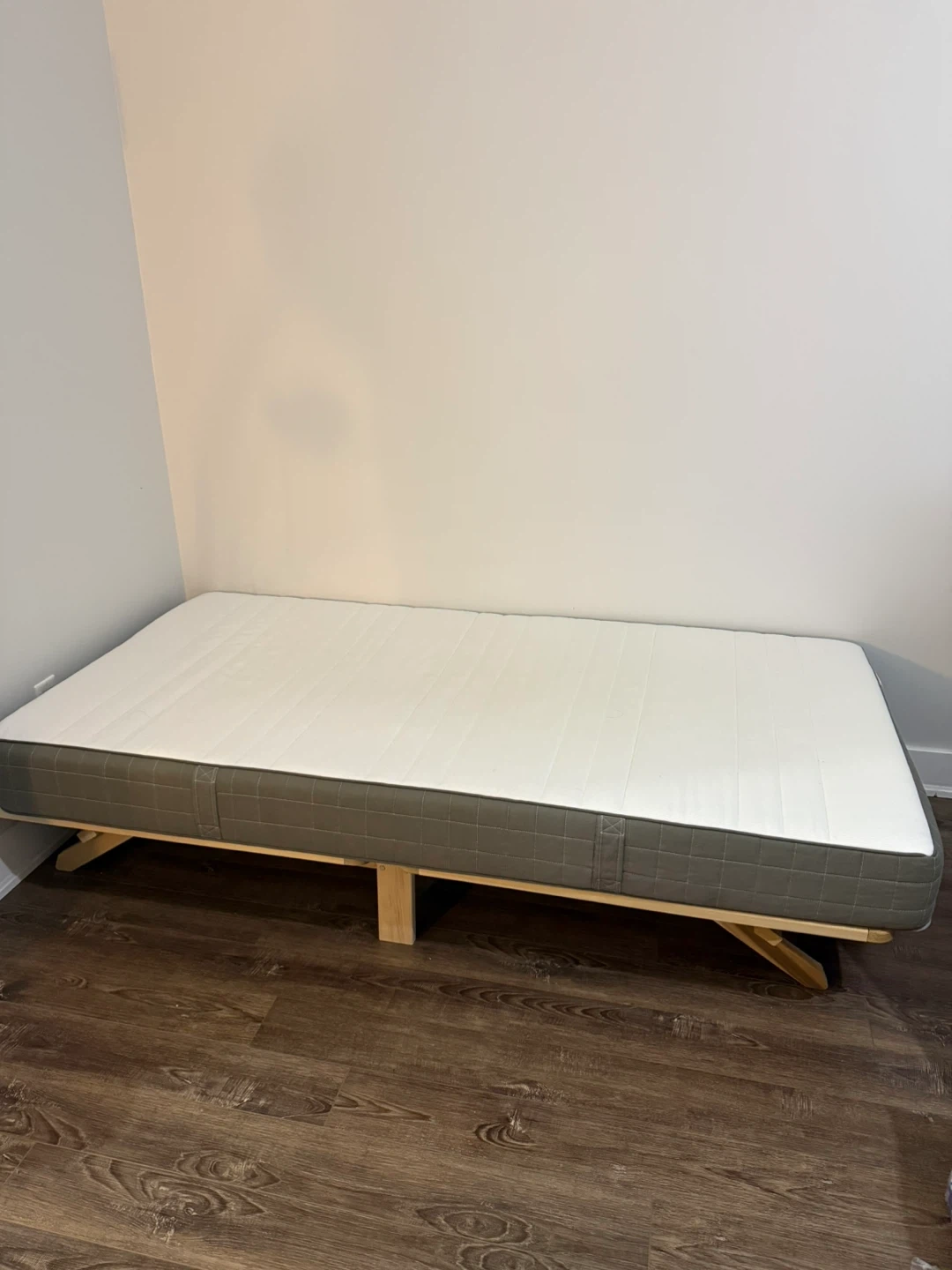 Foldable Solid Wood Bed Frame with IKEA mattress (twin) set