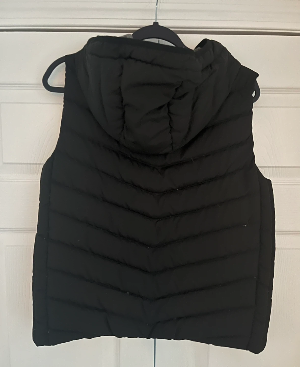 GAP Black Puffer Vest with Faux Fur Hood - Size M